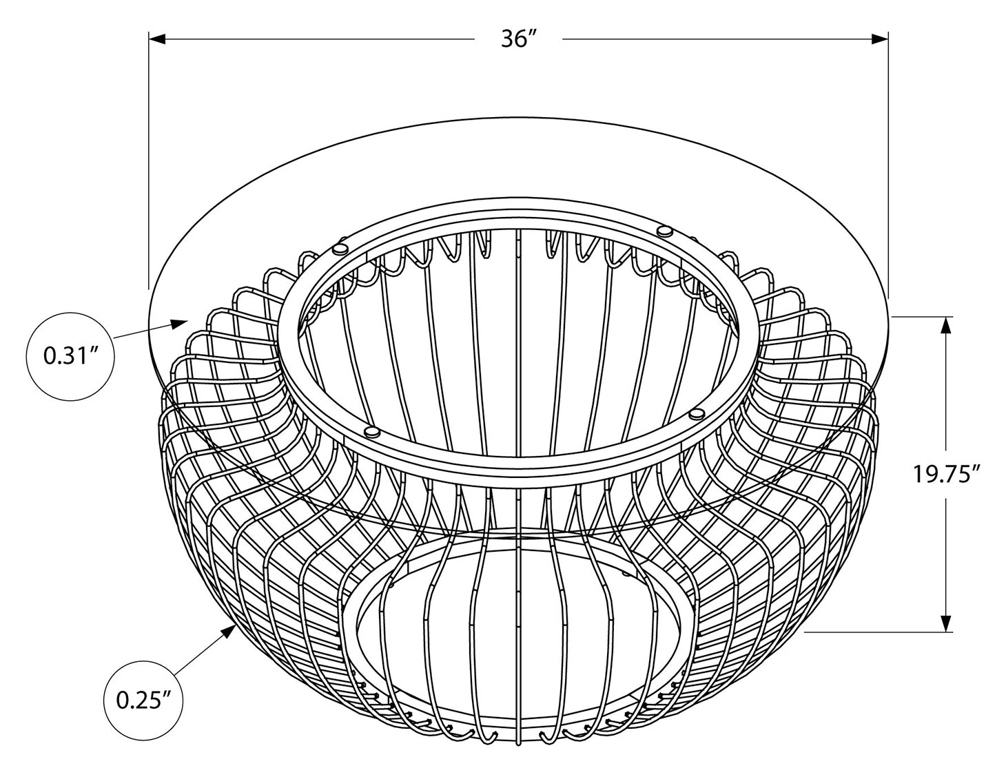 - Dimensions du produit : 36 pouces de long x 36 pouces de large x 19,75 pouces de haut