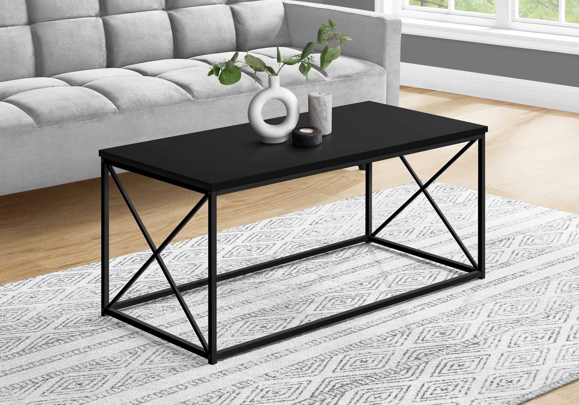 Inspirée par des lignes épurées et une sensation simpliste mais moderne, cette table basse en métal noir et plateau noir offre une allure contemporaine qui vous fera vous sentir à l'aise dans votre salon, bureau ou tanière. Doté d'une finition de dessus de table noire lisse et moderne qui égayera votre espace de vie, tandis que les pieds en métal noir en forme de X correspondant et complètent le dessus de table. Ajoutez cette table centrale remarquable à la collection de décoration de petite maison, condo ou appartement dès maintenant !