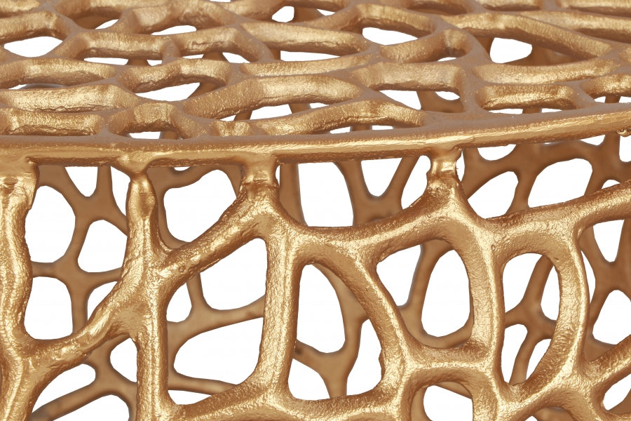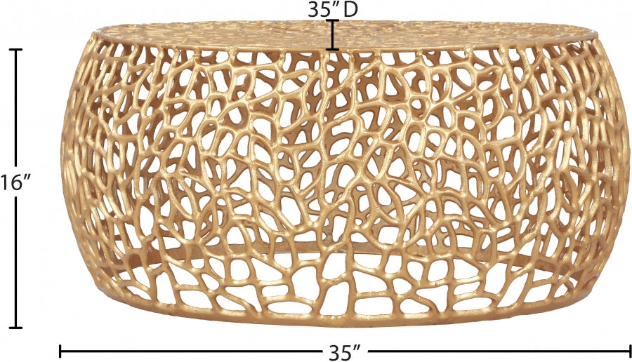 Donnez à votre espace un facteur wow supplémentaire avec cette table basse Priya joliment moderne. Cette table contemporaine est fabriquée en aluminium massif pour une construction durable et durable qui peut durer des années d'utilisation. Les volutes détaillées étonnamment complexes et la finition dorée attrayante lui confèrent une ambiance élégante et à la mode qui convient parfaitement à votre salon ou votre tanière. Associez-le à la table d'appoint coordonnée pour un look coordonné dans votre chambre.