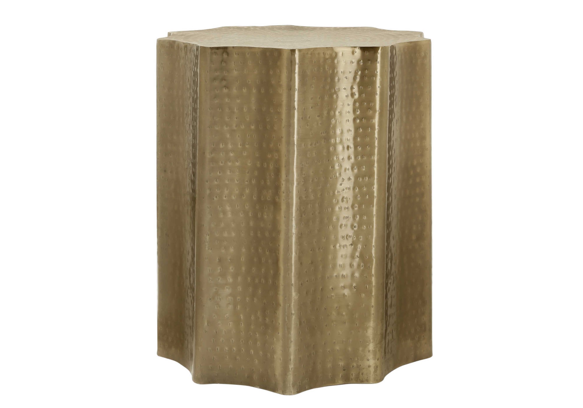 - Élégamment fabriqué à la main dans un design festonné avec une texture martelée, cette table tambour de 22 po avec une finition en métal doré est une pièce d'accent polyvalente, apportant un look bohème glamour accrocheur à votre salon ou votre chambre.