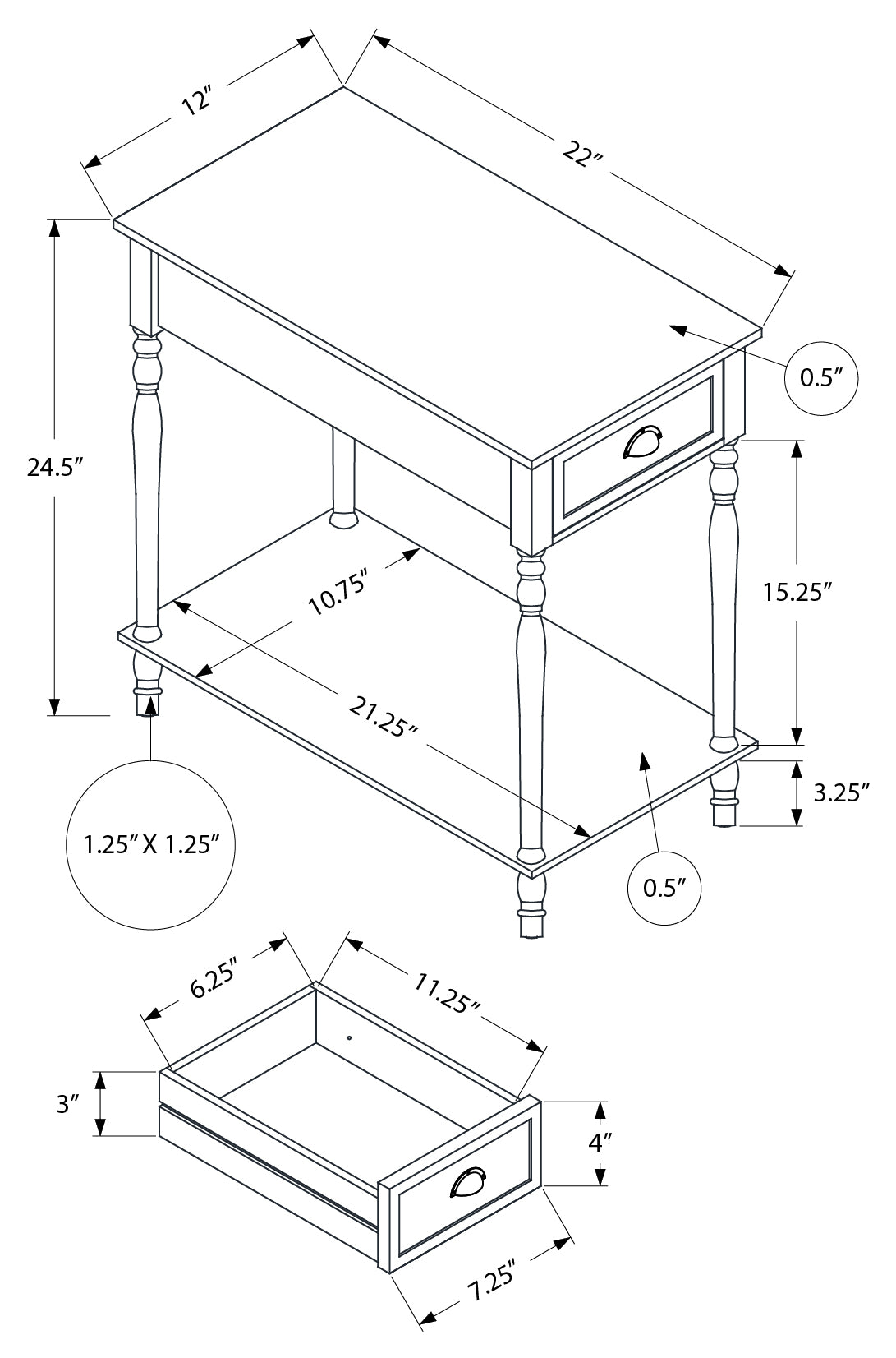 Cette table d'appoint tendance et pratique de 24 pouces de hauteur est une pièce incontournable pour votre maison. Avec un design peu encombrant, cette table d'appoint à 2 niveaux est parfaite pour les petits espaces grâce à son profil étroit à placer à côté d'un fauteuil ou d'un canapé dans un salon avec une petite lampe sur le dessus biseauté, ou comme charmante table de nuit dans la chambre. La riche finition en placage brun cerisier avec de minces pieds pivotants ajoute une touche d'élégance traditionnelle à n'importe quelle pièce, tandis que le tiroir de rangement doté d'une belle poignée en métal bronze et d'une tablette inférieure vous permet de garder facilement vos essentiels à portée de main. Conçue de manière durable avec des matériaux de qualité pour résister à une utilisation quotidienne avec un plateau facile à nettoyer, cette table de bout bénéficie d'une garantie limitée de 5 ans contre les défauts de fabrication pour votre commodité. Rapide et facile à assembler avec les instructions illustrées incluses pour que vous puissiez avoir cette configuration de table d'appoint polyvalente et prête à en profiter en un rien de temps !