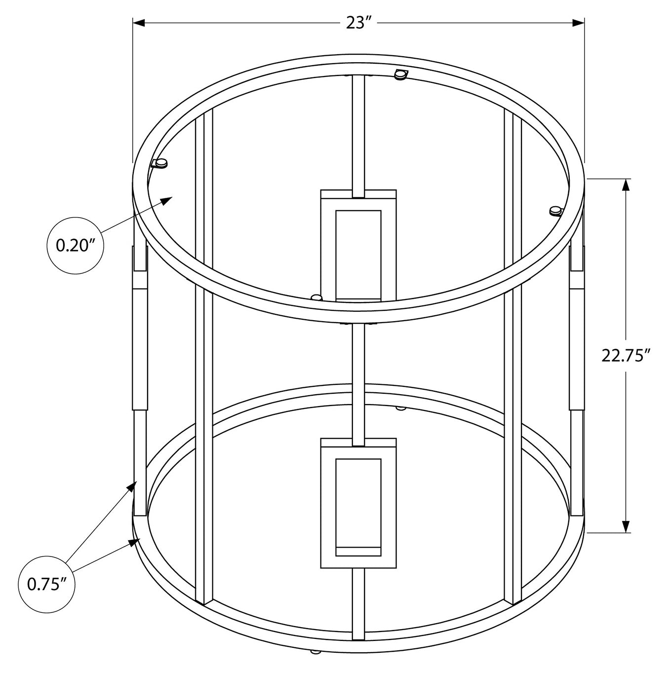 - Dimensions du produit : 23 pouces de long x 23 pouces de large x 22,75 pouces de haut