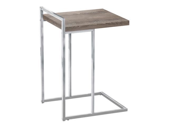 Cette table d'appoint en forme de C apporte quelque chose de plus à la table. Le dessus de table à panneau épais dans une finition d'aspect bois taupe foncé offre une surface plus large que la plupart des tables C de taille standard. Plus d'espace de surface vous donne plus d'occasions d'utiliser cette table de bout. Il peut être multitâche dans un salon ou une chambre comme table de collation lorsque vous regardez la télévision, une table de chevet pour placer un téléphone portable pendant que vous dormez, ou même une petite table pour ordinateur portable lorsque vous devez travailler. La base en métal chromé se glisse sous un canapé ou un lit pour rapprocher les objets de vous et offre une autre fonctionnalité pratique : le haut du cadre s'étend sur le dessus de table pour créer une poignée qui facilite le levage et le déplacement de cette table d'appoint portable.