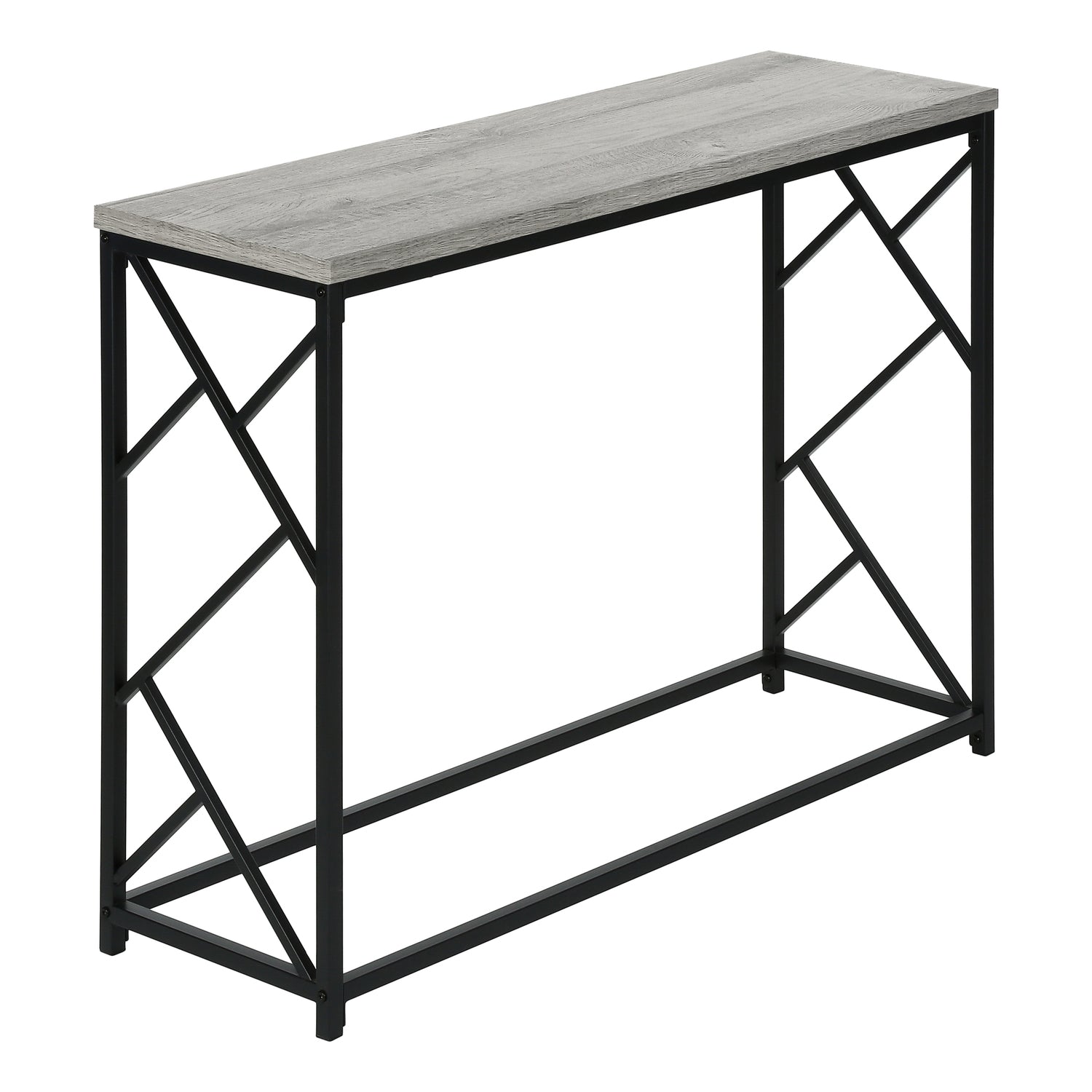 Rehaussez l'entrée de votre petite maison, condo ou appartement avec cette table d'appoint minimaliste qui vous permettra de mettre en valeur la beauté de votre décor grâce à une grande surface. Finie dans un aspect bois gris, cette table de couloir robuste à cadre en métal noir peut correspondre à n'importe quel style de décoration avec un design entrecroisé attrayant. Il est parfait pour toutes les décorations et accessoires tels que vos livres, lunettes, cadres photo et plantes.