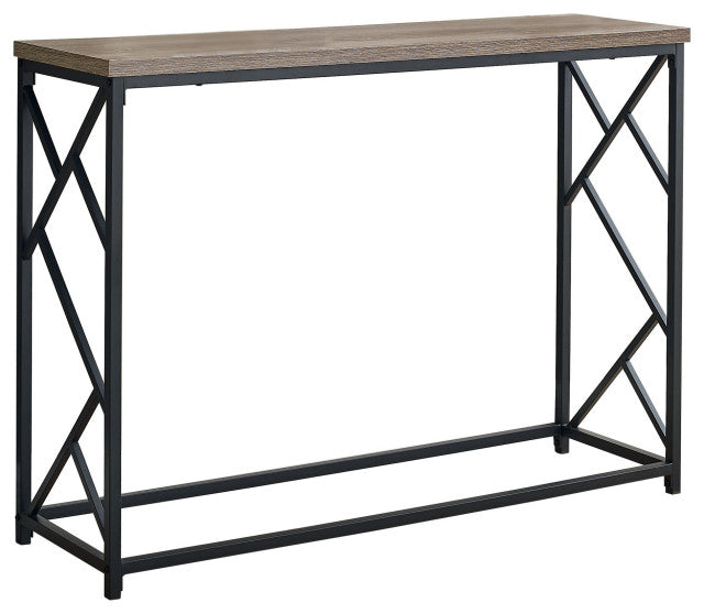 Rehaussez l'entrée de votre petite maison, condo ou appartement avec cette table d'appoint minimaliste qui vous permettra de mettre en valeur la beauté de votre décor grâce à une grande surface. Avec une finition aspect bois taupe, cette table d'entrée robuste en métal noir peut s'adapter à n'importe quel style de décoration grâce à son design croisé attrayant. Il est parfait pour toutes les décorations et accessoires tels que vos livres, lunettes, cadres photo et plantes.