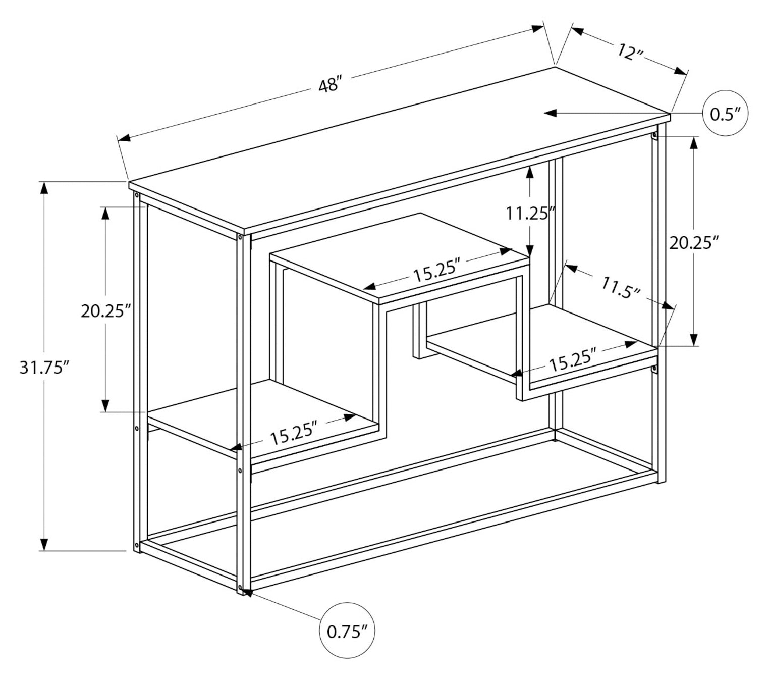TABLE D'APPOINT - 48"L / CONSOLE D'ENTREE METAL GRIS / NOIR