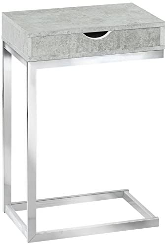 Avec beaucoup de classe, cette table d'appoint et de bout moderne en forme de C est également dotée de toutes les fonctionnalités dont vous avez besoin. Idéale à côté de votre canapé ou de votre lit, la table d'appoint est parfaite pour votre petite maison, votre appartement ou votre condo et apportera sûrement plus de jazz à votre soirée cinéma, séance d'étude ou moment de calme. Dotée d'une finition en ciment tendance, la base en métal chromé robuste repose légèrement sur le sol pour éviter d'endommager votre sol. N'oubliez pas un tiroir de rangement pratique pour tous les accessoires de salon tels que les télécommandes, les sous-verres, les magazines ou plus encore. Faites-en votre nouvelle pièce de salon préférée.