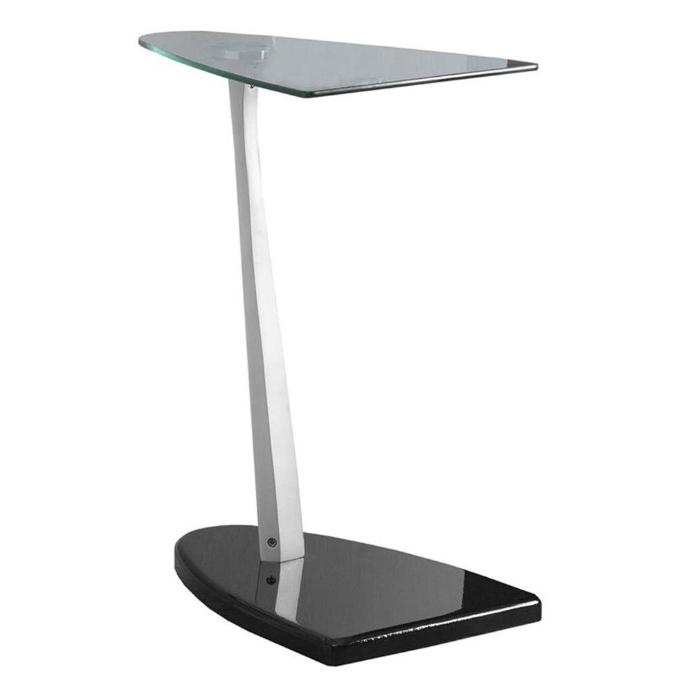 Ajoutez une touche contemporaine à votre salon avec cette table à goûter avant-gardiste. Une base noire brillante, un dessus en forme de flipper en verre trempé et un bras de support argenté confèrent à cette table d'appoint un design élégant. Utilisez-le comme collation ou table d'appoint pour n'importe quelle pièce de votre maison ou de votre bureau.