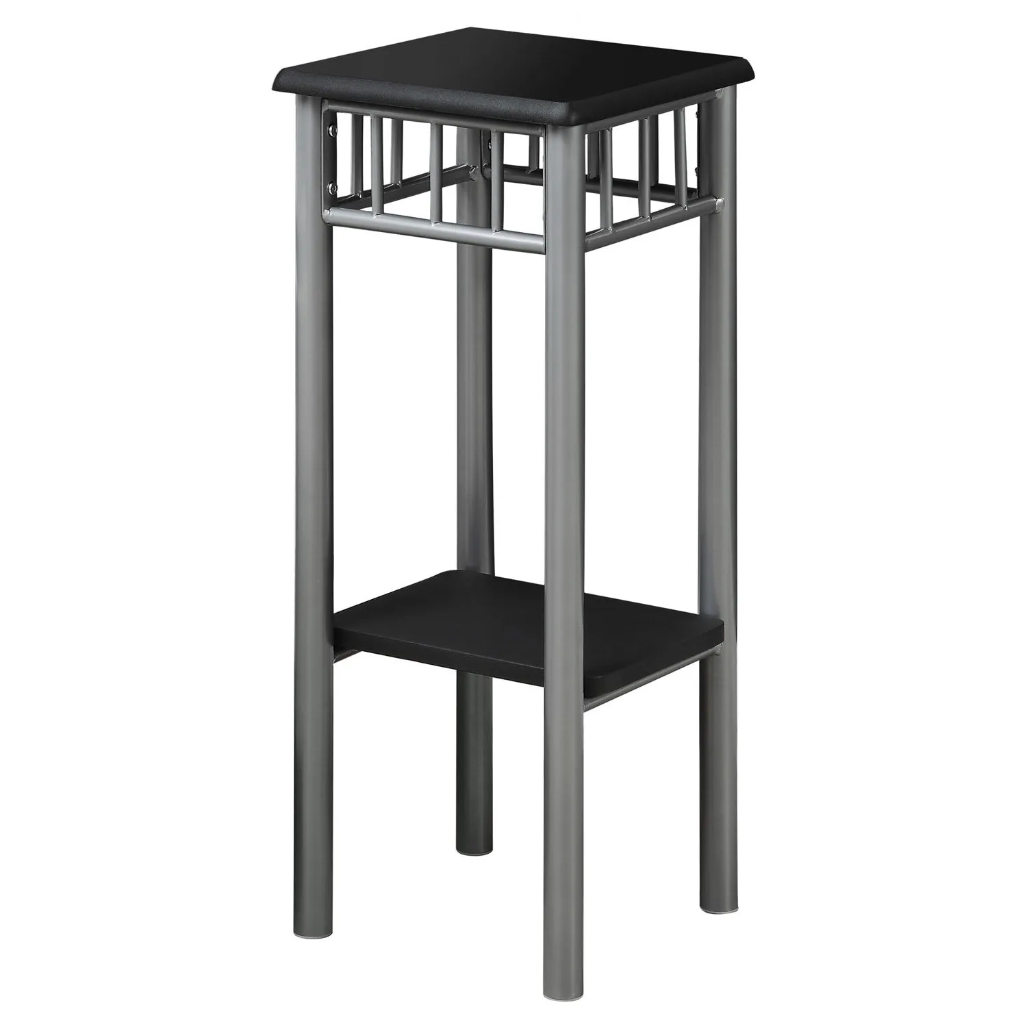 Avec une simple étagère supérieure carrée en stratifié noir et une étagère inférieure, ce support pour plante/table d'appoint apporte un style contemporain à n'importe quelle pièce. La base en métal argenté offre un support solide ainsi qu'un look élégant à l'ensemble de la table. Utilisez cette table multifonctionnelle pour placer votre plante préférée, une petite lampe ou des pièces décoratives. Il ne manquera pas d'attirer l'attention dans votre salon, votre entrée, votre salle familiale ou votre espace de bureau.