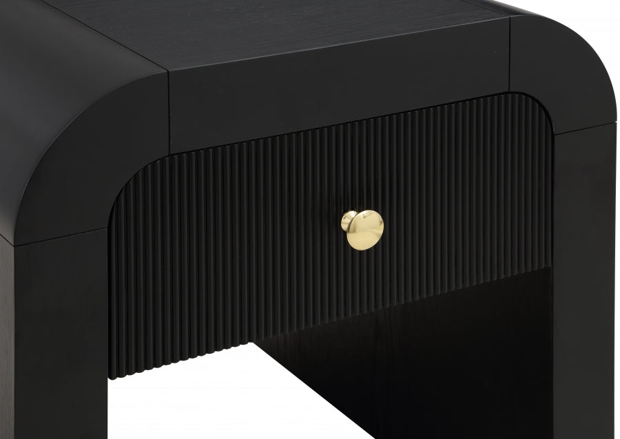 Faites de l'organisation une affaire élégante lorsque vous ramenez à la maison cette table de bout Artisto. Cette magnifique table de bout présente un design élégant et accrocheur avec sa riche finition noire en placage de bois et sa conception texturée à l'avant du tiroir. Le tiroir de rangement vous offre beaucoup d'espace pour ranger des articles hors de vue et hors de l'esprit, et le tiroir spacieux vous assure que le pouvoir d'organisation est à portée de main. Pour plus de polyvalence, des poignées dorées et chromées sont incluses avec la table de bout.