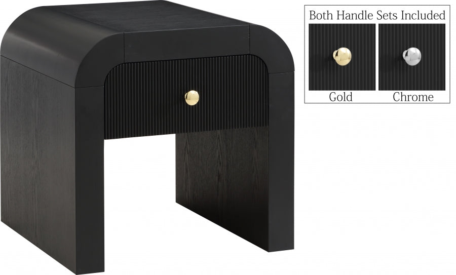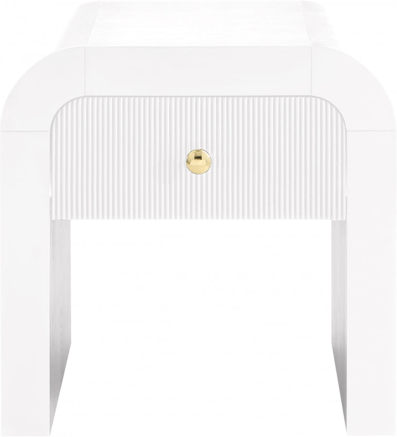 Faites de l'organisation une affaire élégante lorsque vous ramenez à la maison cette table de bout Artisto. Cette belle table de bout présente un design élégant et accrocheur avec sa riche finition blanche en placage de bois et sa conception texturée à l'avant du tiroir. Le tiroir de rangement vous offre beaucoup d'espace pour ranger des articles hors de vue et hors de l'esprit, et le tiroir spacieux vous assure que le pouvoir d'organisation est à portée de main. Pour plus de polyvalence, des poignées dorées et chromées sont incluses avec la table de bout.
