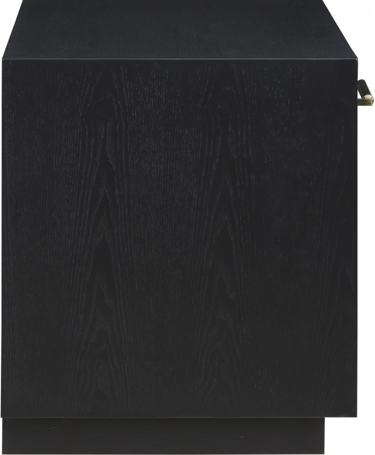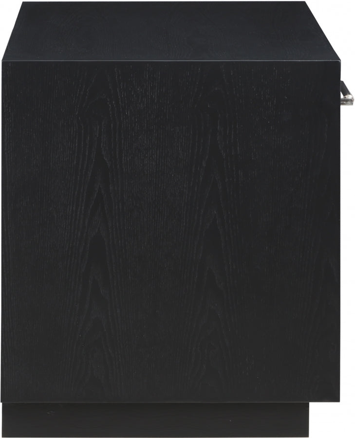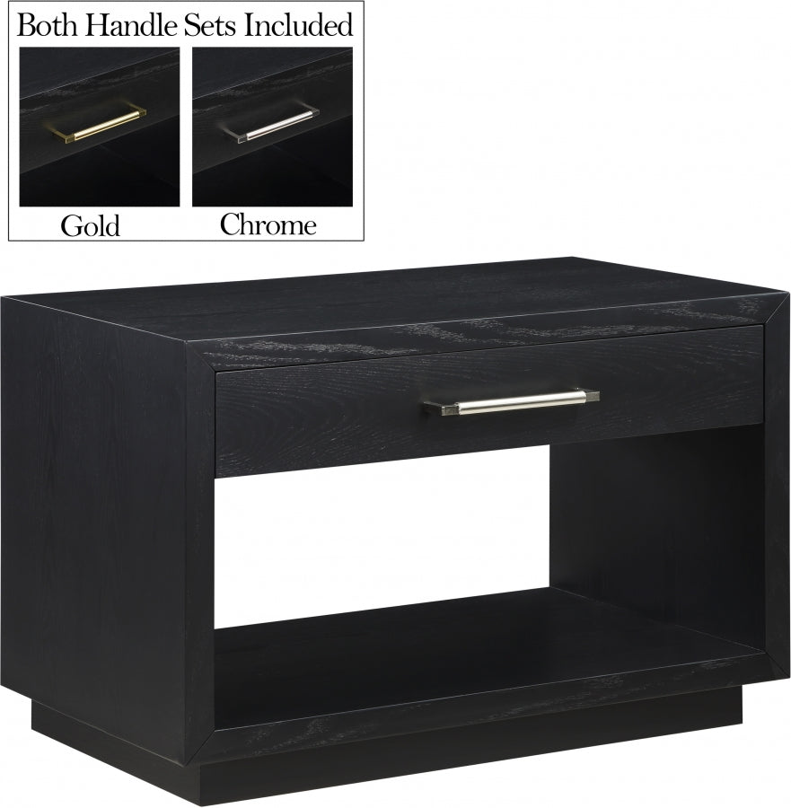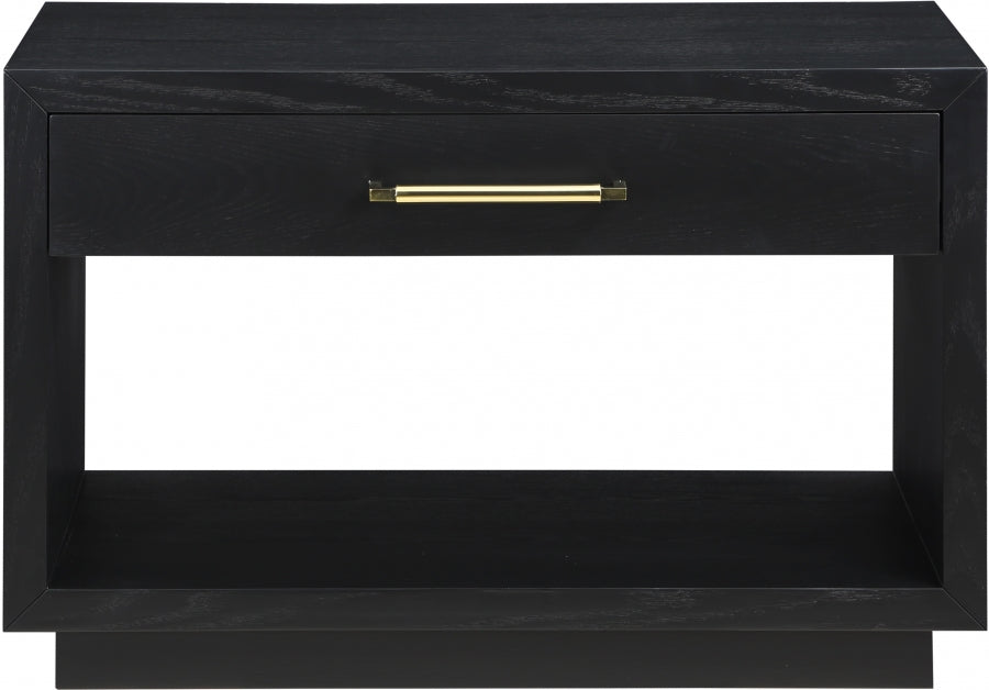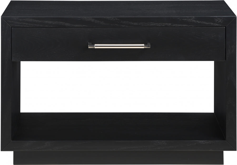 Élégante et accrocheuse, la superbe table de chevet Avery en placage de bois noir de Meridian Furniture est le complément parfait à tout espace.