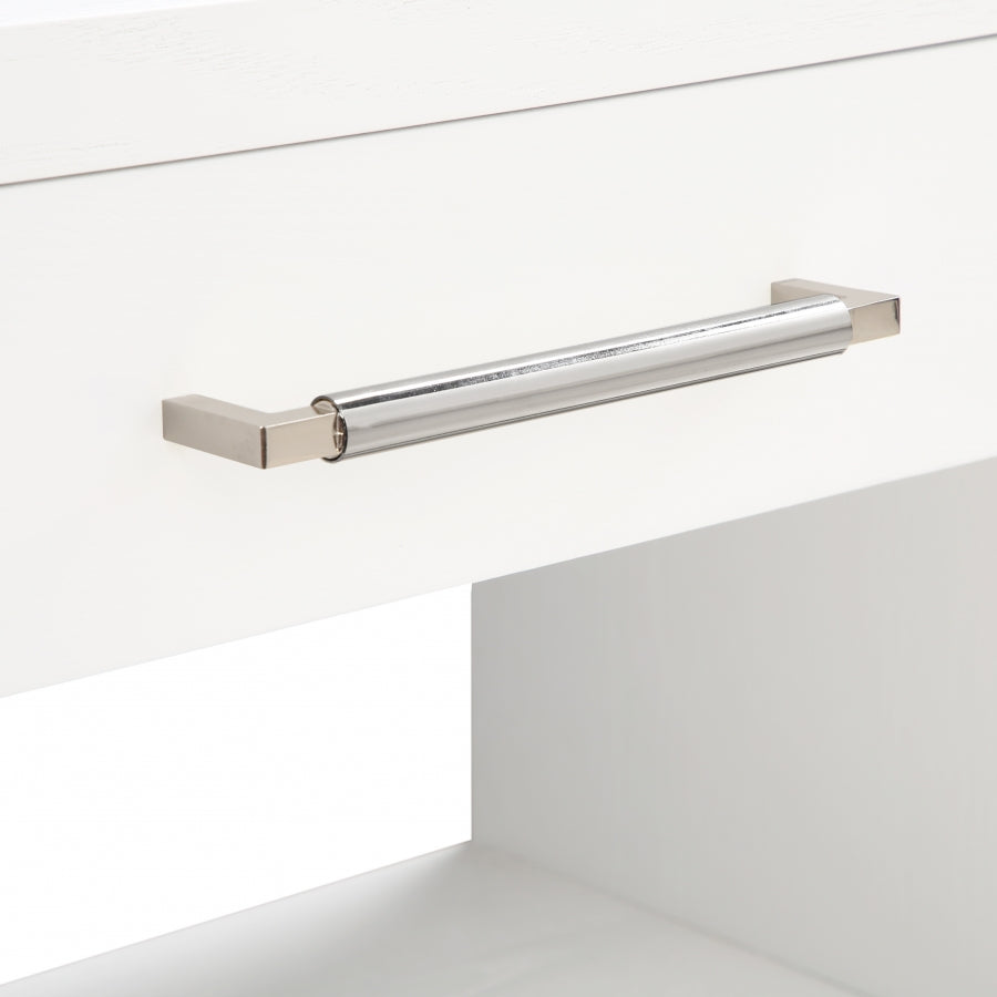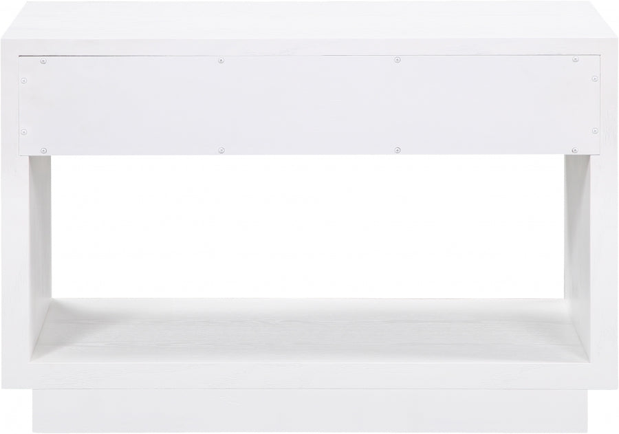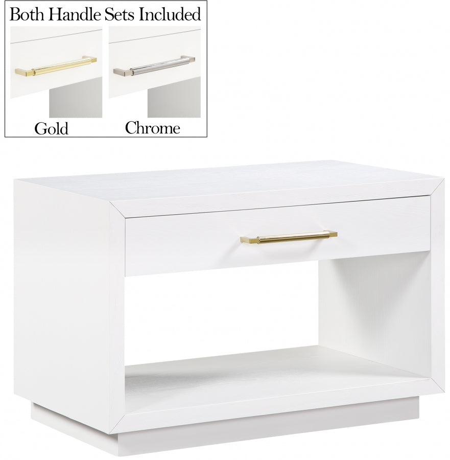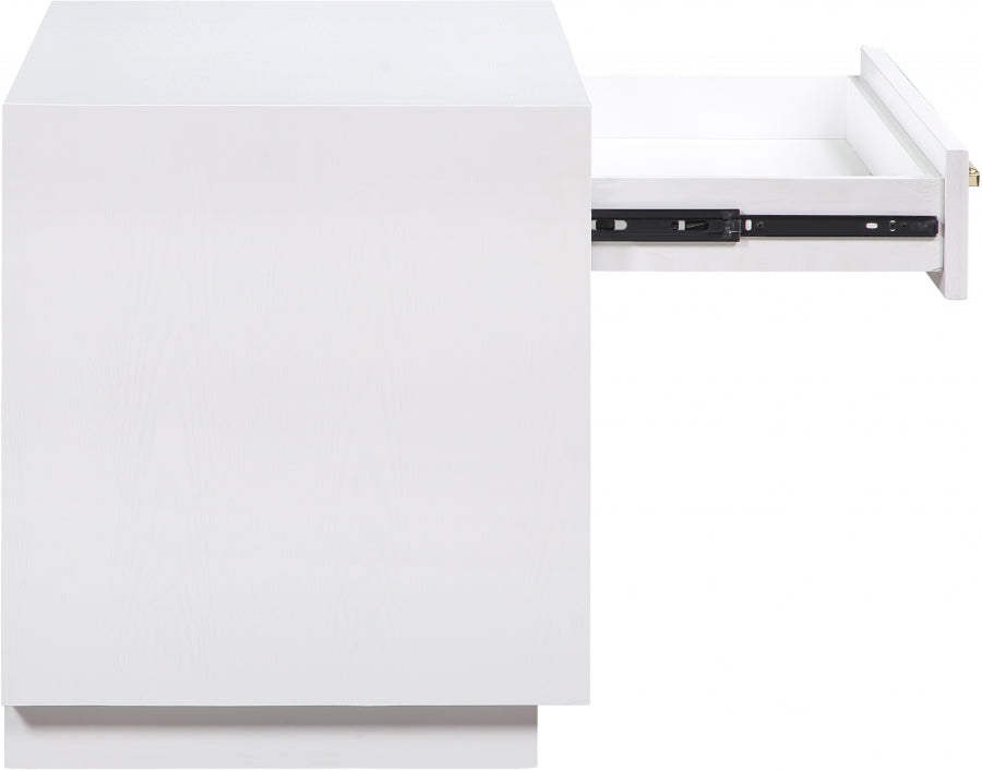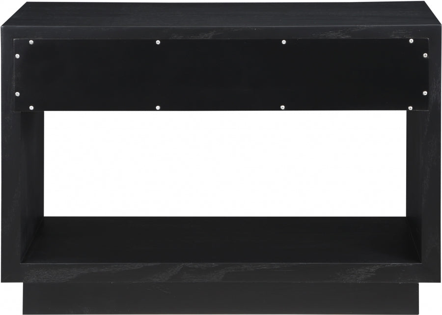 Élégante et accrocheuse, la superbe table de chevet Avery en placage de bois noir de Meridian Furniture est le complément parfait à tout espace.