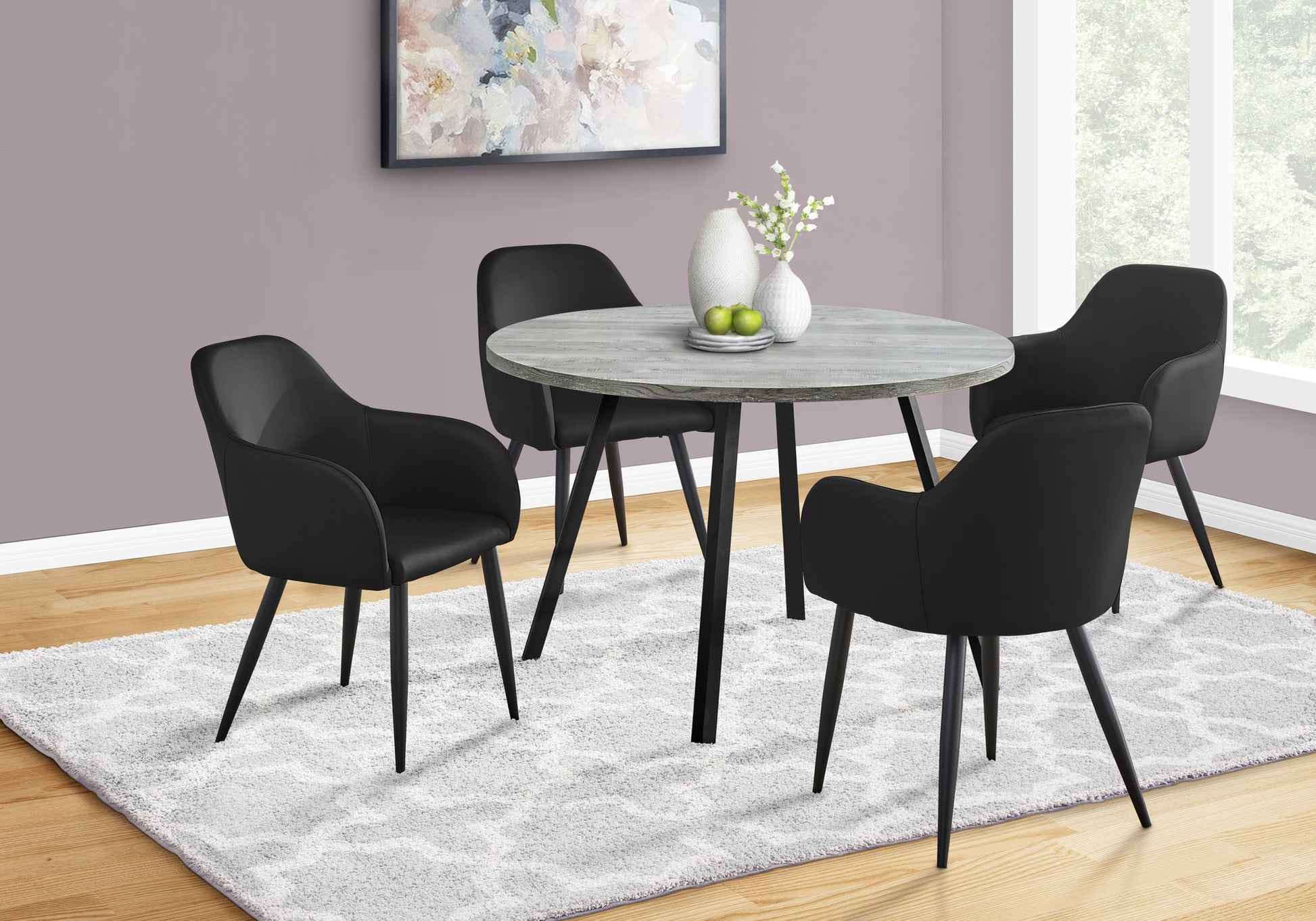 Que vous emménagiez dans un nouveau condo ou que vous rénoviez votre cuisine et votre salle à manger, pensez à votre renouveau avec cette table de salle à manger ronde simple et moderne. Pouvant accueillir confortablement jusqu'à 4 personnes, cette conception de table inspirée du milieu du siècle est dotée d'un magnifique plateau élégant en stratifié gris aspect bois récupéré, contrastant avec de solides pieds en métal noirs inclinés pour plus de stabilité. La taille compacte de cette table de salle à manger est idéale pour les petites cuisines ou un espace de salle à manger ouvert, ce qui lui confère une ambiance chaleureuse lorsque vous recevez en famille ou entre amis. Associez la table à manger avec des chaises confortables (non incluses) et votre coin repas est prêt à être utilisé ! L'assemblage est nécessaire.