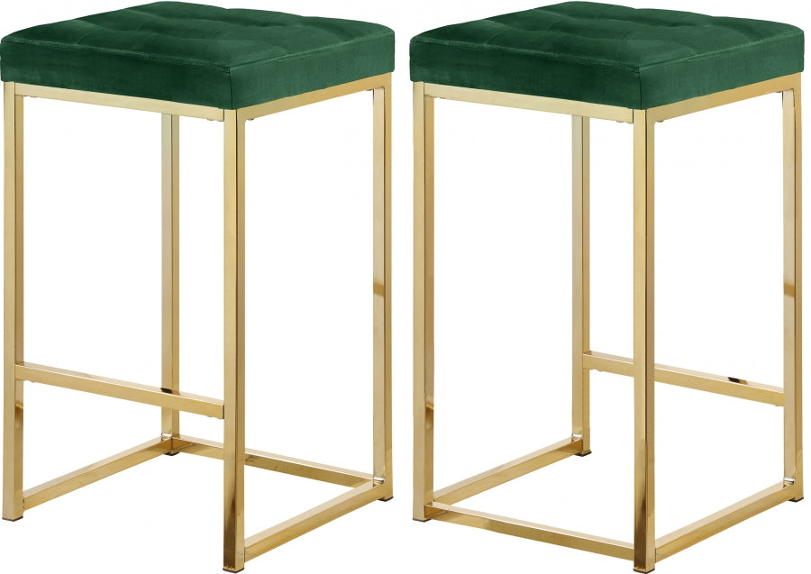 Donnez à votre bar ou à votre comptoir de cuisine une mise à jour rapide avec ce tabouret de comptoir en velours Nicola. Une base en acier au fini doré scintillant offre un soutien suffisant et une résistance résiliente à la conception de ce tabouret, garantissant qu'il dure et dure dans votre maison occupée. Un revêtement en velours amusant recouvre le coussin de siège dodu, assurant un confort jusqu'à «l'heure de fermeture», et le capitonnage sur le siège contient le coussin épais à l'intérieur tout en ajoutant à son allure moderne et élégante. Un repos-pieds sur la base vous permet de reposer vos pieds pendant que vous vous asseyez et vous détendez.