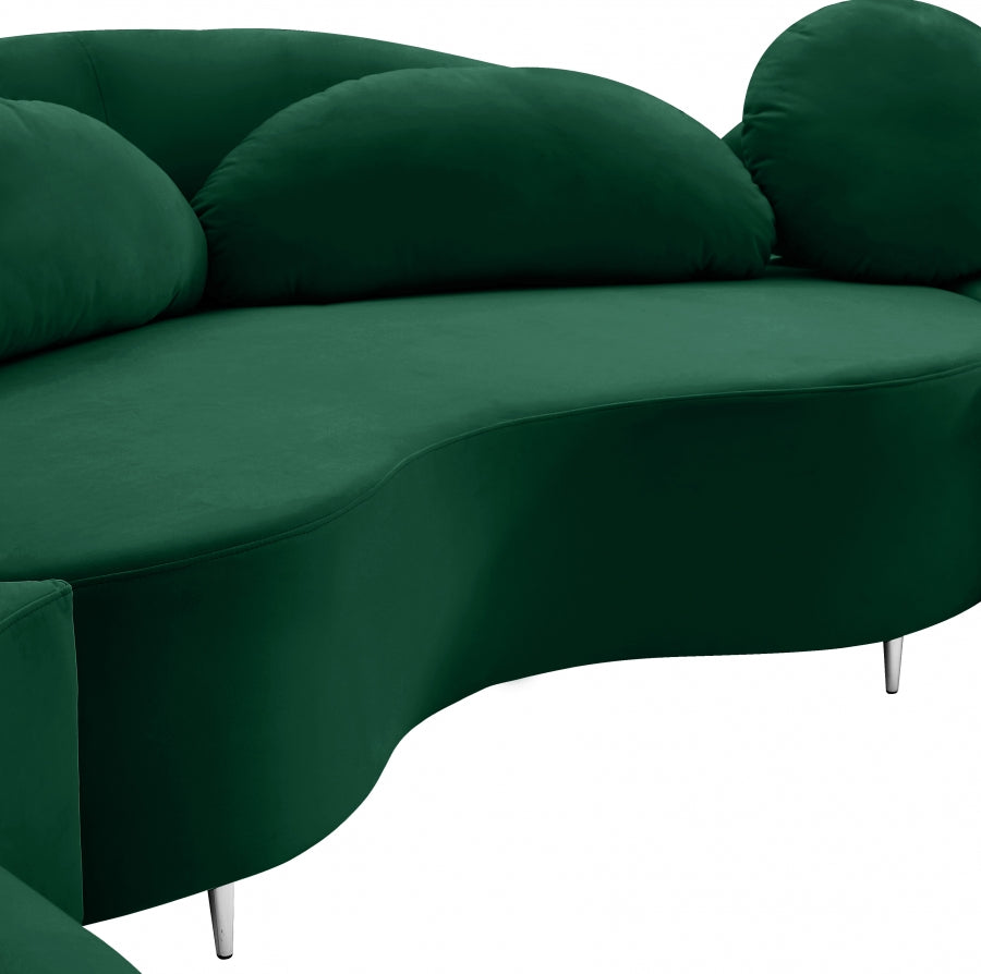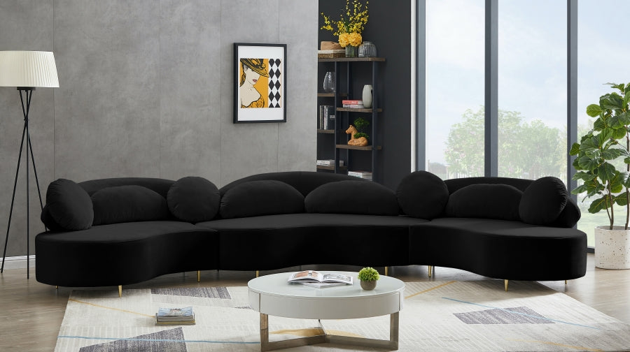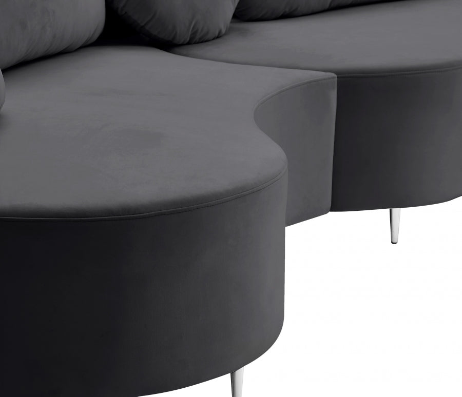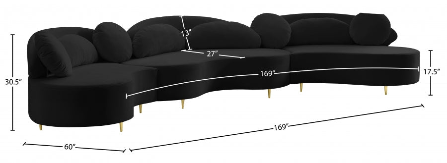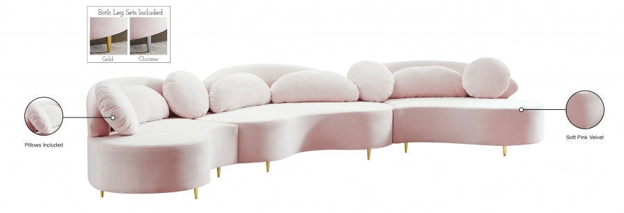 Donnez à votre coin salon une touche de glamour hollywoodien avec ce canapé sectionnel en velours Vivacious. Ce divan sectionnel d'inspiration boudoir offre un amplement d'espace pour que vos potes puissent se détendre et se détendre. Son revêtement en velours doux ajoute à son allure élégante, et il est livré avec des pieds dorés et chromés, de sorte que vous pouvez donner une touche personnalisée à votre nouveau sectionnel. Les oreillers sont inclus pour encore plus de confort.