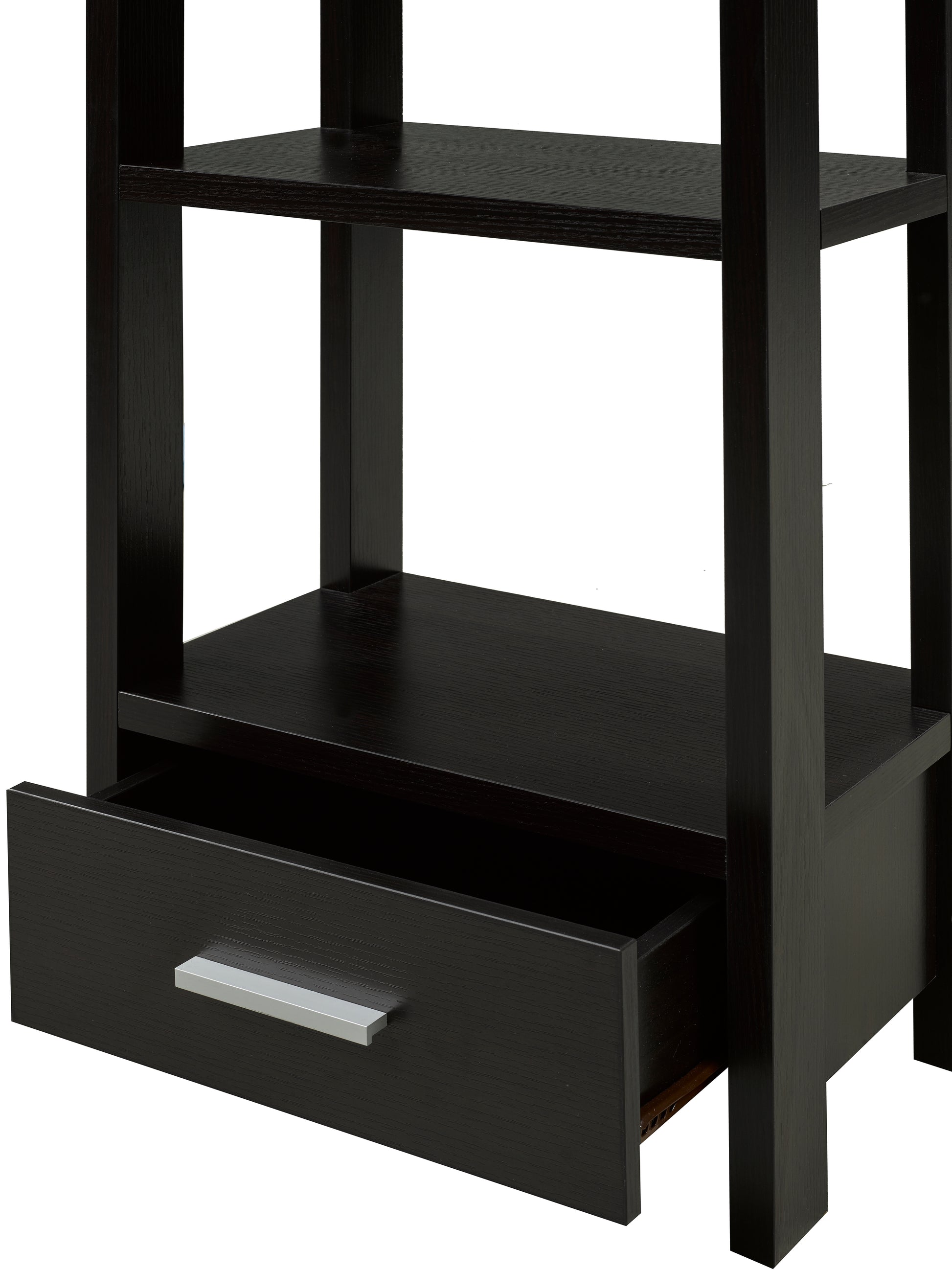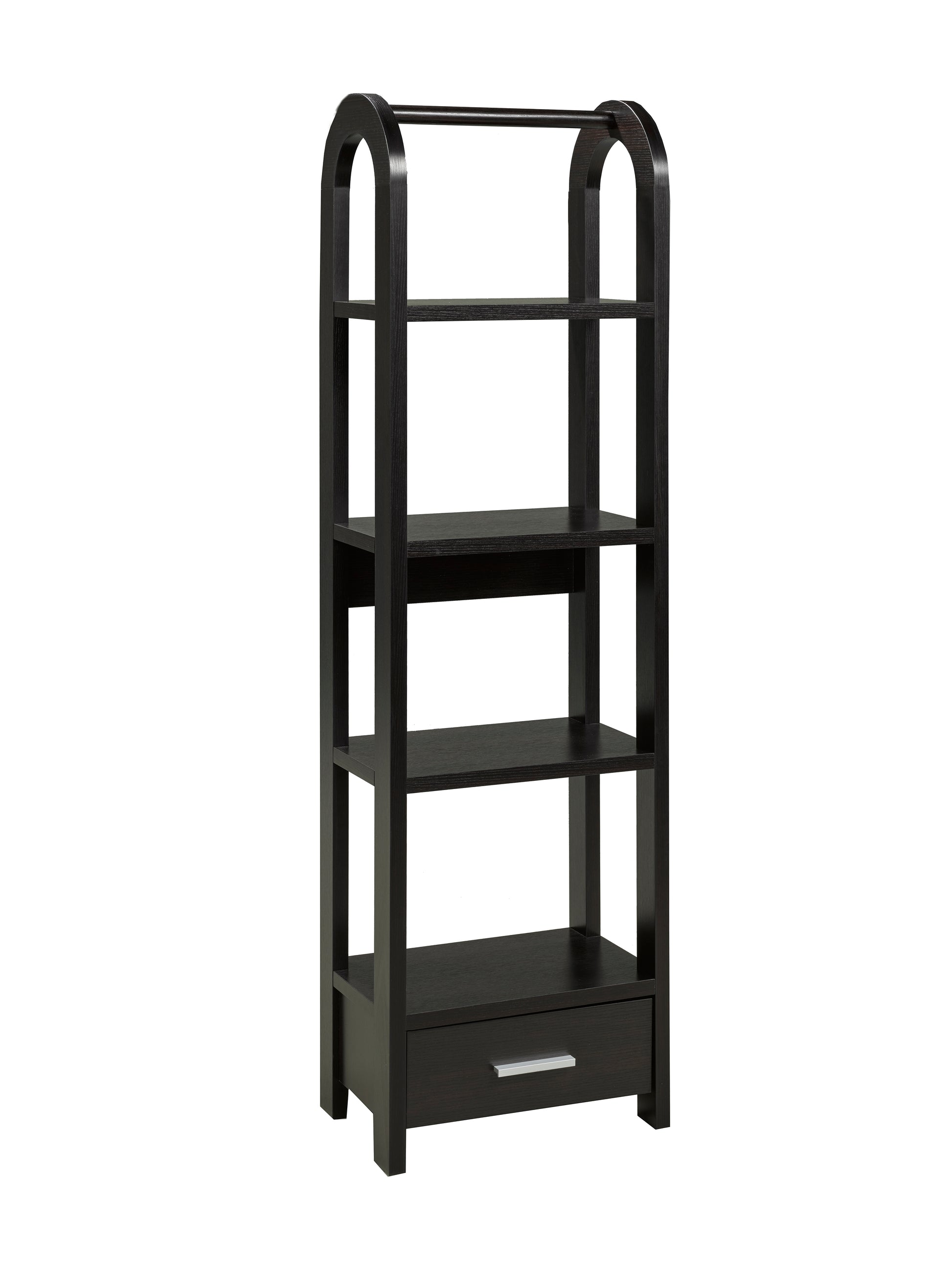 Avec une courbure douce au sommet de ce présentoir à plusieurs étagères, vous pouvez facilement ajouter une touche de traditionalisme à votre décor moderne. Les lignes épurées et les étagères rectangulaires offrent un aspect et une sensation épurées, permettant à vos œuvres d'art, photographies et éléments décoratifs de briller. Un tiroir inférieur offre de l'espace pour ranger proprement de petits objets comme des sous-verres et des ronds de serviette.