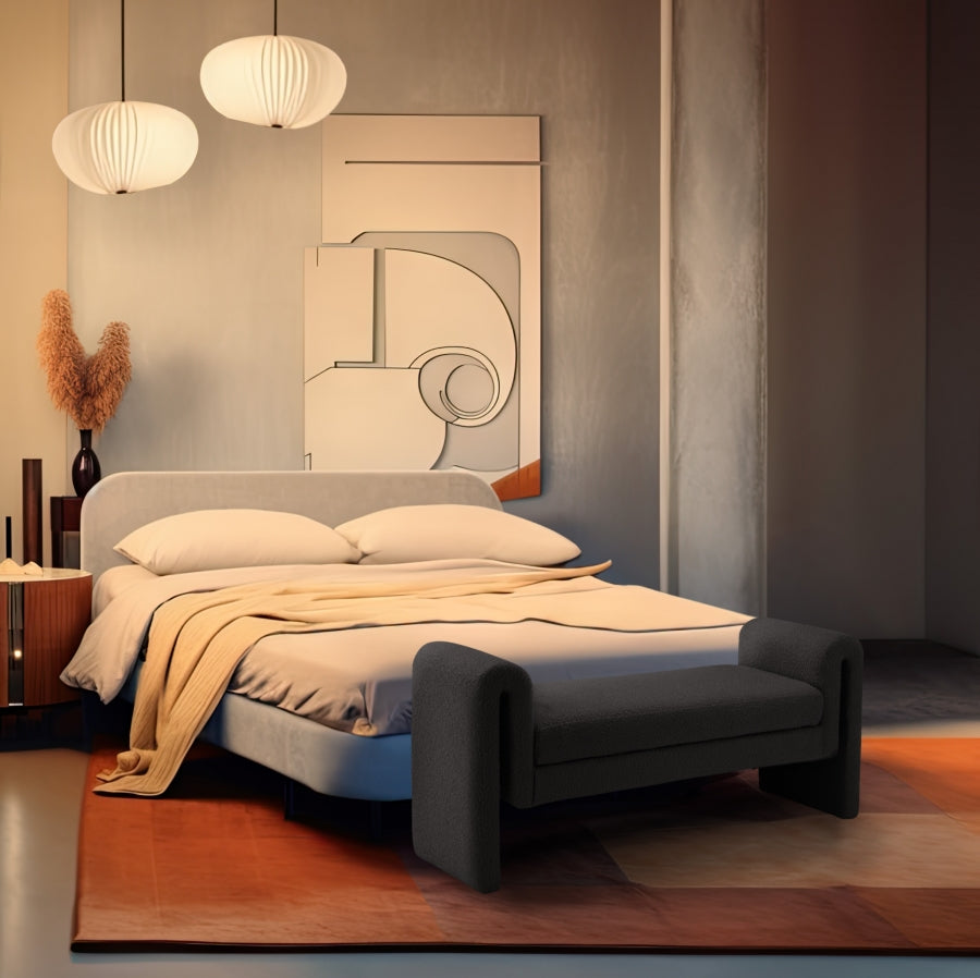 Apportez une touche contemporaine à votre maison avec ce banc en boucle de la collection Stylus de Meridian Furniture. Doté d'un design unique recouvert d'un riche tissu bouclé, ce banc est aussi original que confortable. Les bras incurvés offrent un lieu de repos afin que vos bras ne se fatiguent pas pendant que vous êtes assis et visitez, regardez la télévision ou lisez un livre. Ce superbe banc est le complément parfait à tout espace de vie moderne.