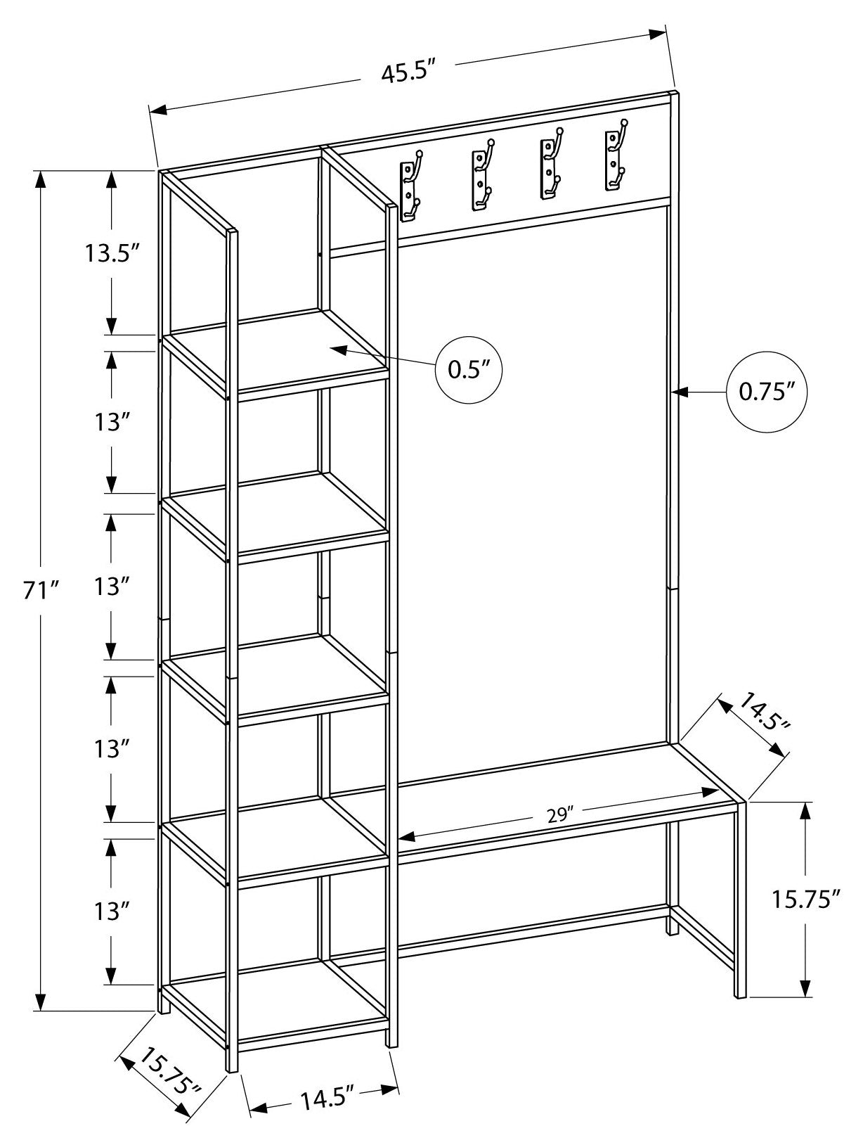 - Dimensions du produit : 45,5 pouces de long x 15,75 pouces de large x 71 pouces de haut ; le banc mesure 29 pouces de long x 14,5 pouces de large x 15,75 pouces de haut