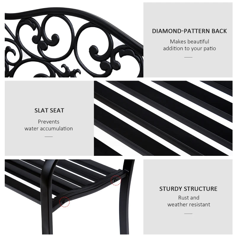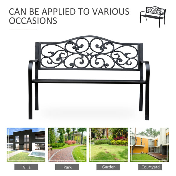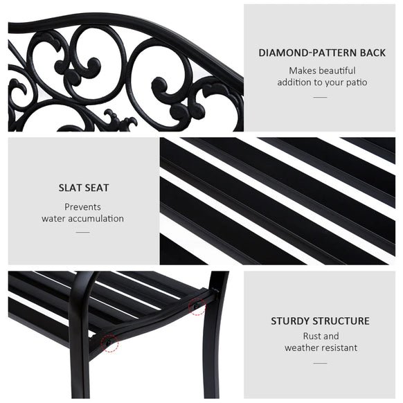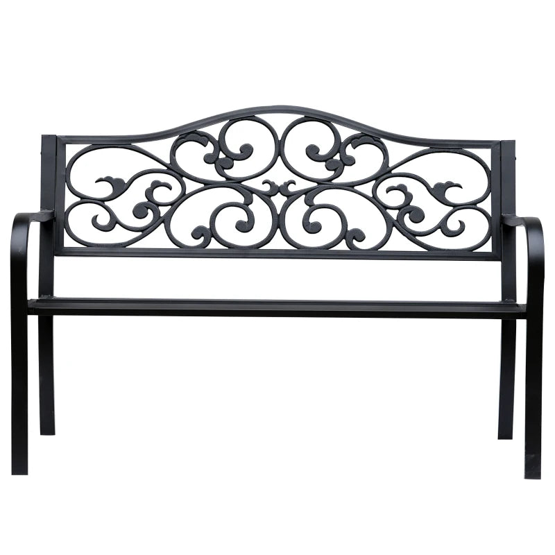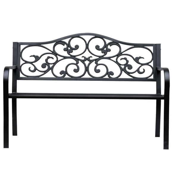 Banc de jardin, causeuse d'extérieur avec motif floral vintage en métal moulé, 50 x 23,6 x 35 po, noir