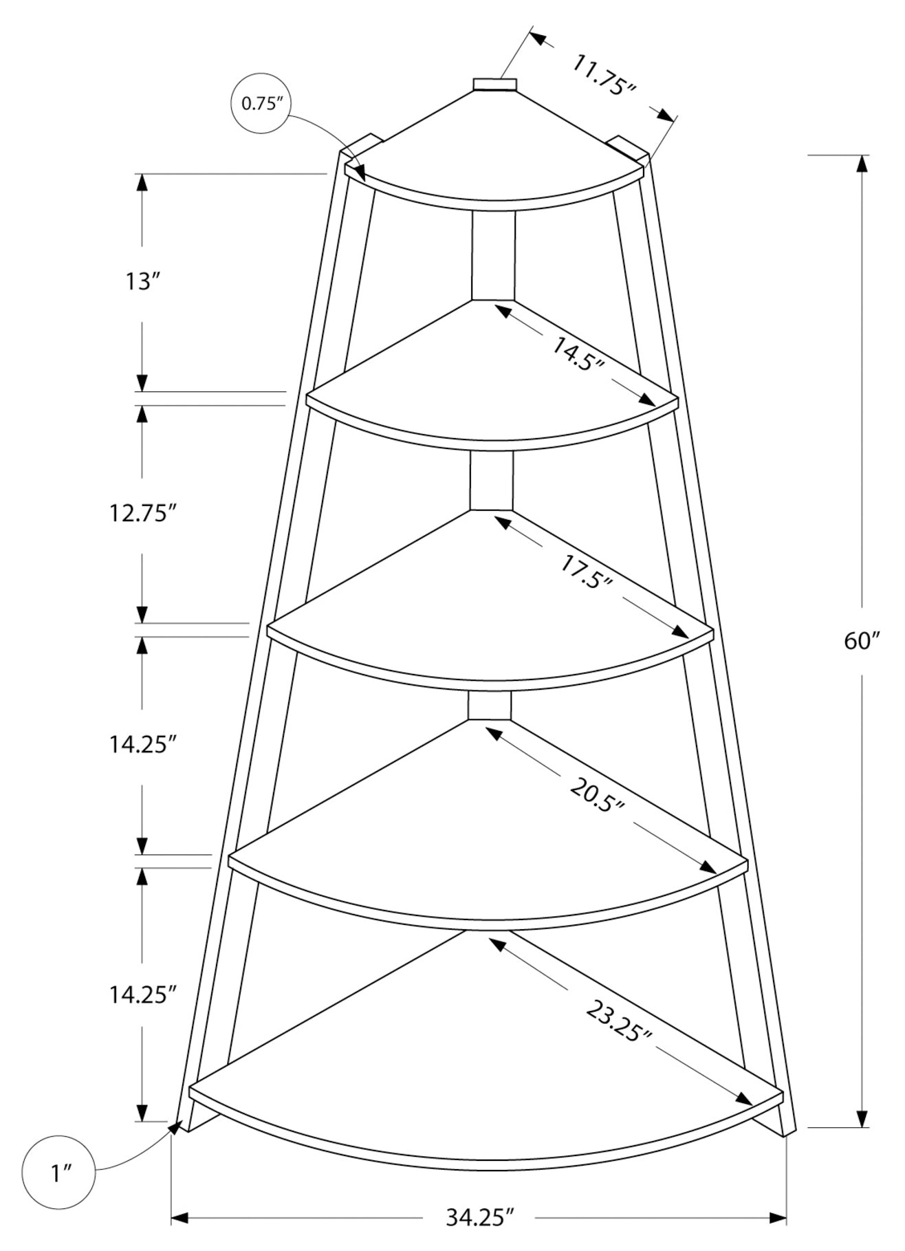 BIBLIOTHÈQUE - 60"H / ÉTAGERE D'ACCENT EN COIN TAUPE FONCÉ