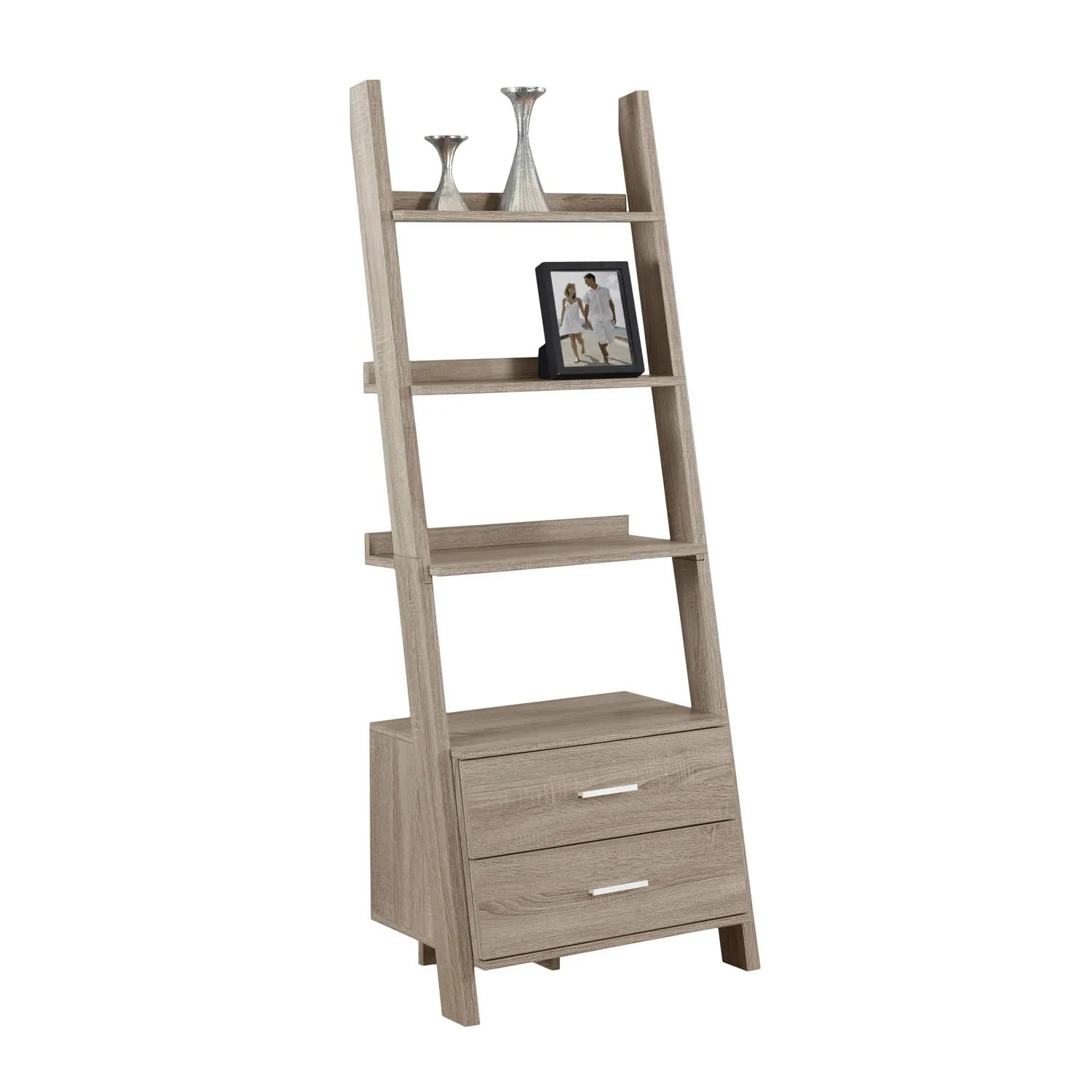 Ajoutez une touche de style moderne à votre espace de vie avec cette bibliothèque sophistiquée qui comprend du matériel de basculement pour une stabilité accrue. Le format d'étagère à échelle étroite comprend quatre étagères ouvertes graduées et deux tiroirs de rangement pratiques équipés de poignées élégantes en métal argenté pour ajouter une touche de style supplémentaire à votre décor. Ces étagères à échelle sont l'endroit idéal pour ranger des livres, des plantes, des cadres photo et d'autres articles essentiels à la maison. Sa finition taupe lui donne une apparence incroyablement unique qui ne manquera pas d'attirer l'attention de vos amis et de votre famille.