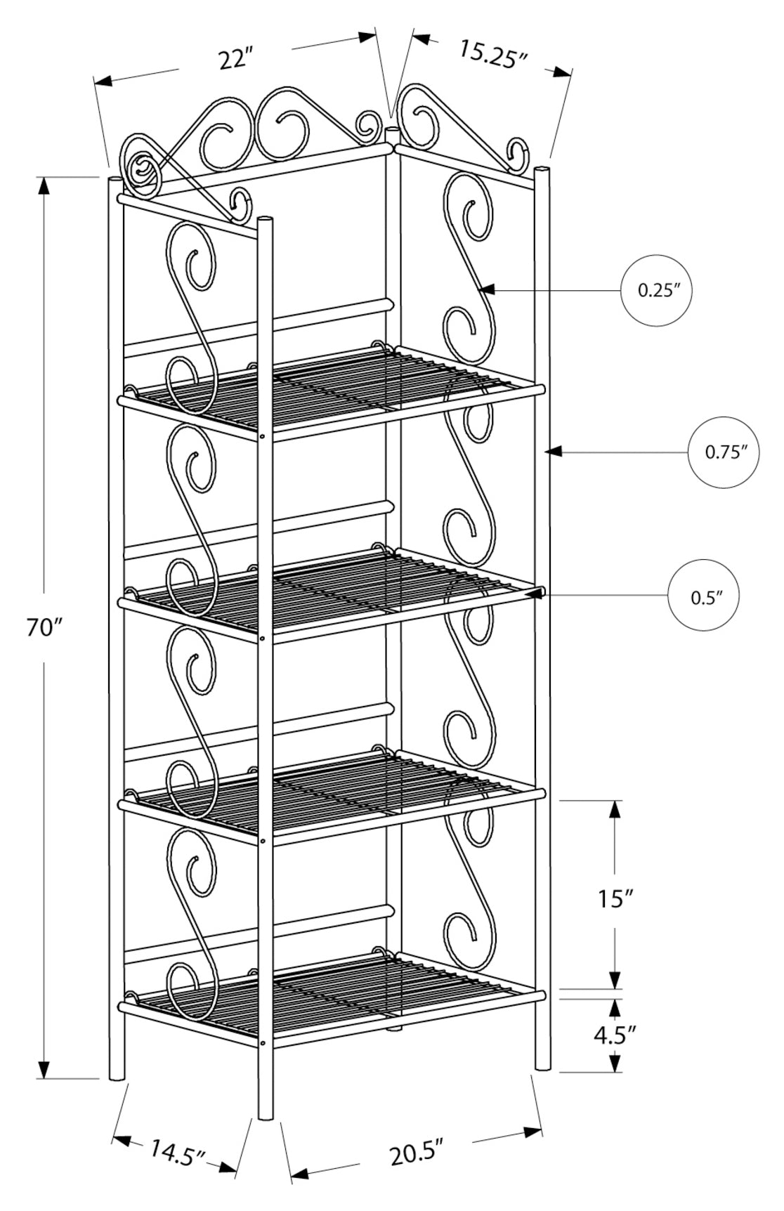 - 4 tablettes ouvertes en fil métallique dans un ton cuivré idéales pour le rangement ou pour afficher vos accents préférés