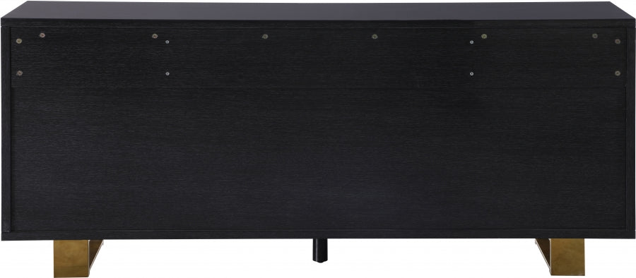 Organisez les couverts et l'argenterie dans les trois tiroirs spacieux de ce buffet buffet Excel. Ce buffet costaud offre amplement d'espace pour ranger les choses dont vous avez besoin dans la salle à manger, à l'abri des regards et des pensées. La riche finition laquée en placage de chêne gris avec une base et des poignées dorées donne à cette unité le panache moderne nécessaire pour s'intégrer à presque tous les ensembles de salle à manger contemporains. La construction en bois et en acier inoxydable assure une beauté durable et des performances durables.