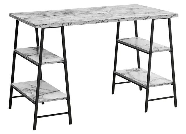 BUREAU D'ORDINATEUR - 48"L / ASPECT MARBRE BLANC / METAL NOIR