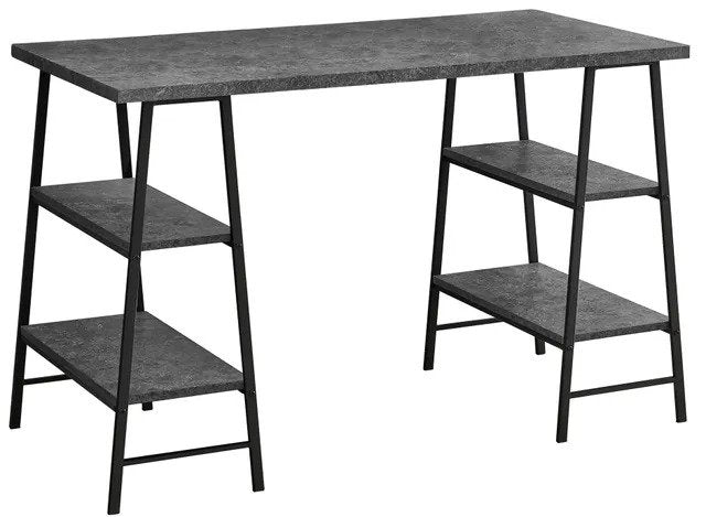 BUREAU D'ORDINATEUR - 48"L / SIMILI PIERRE GRIS / METAL NOIR
