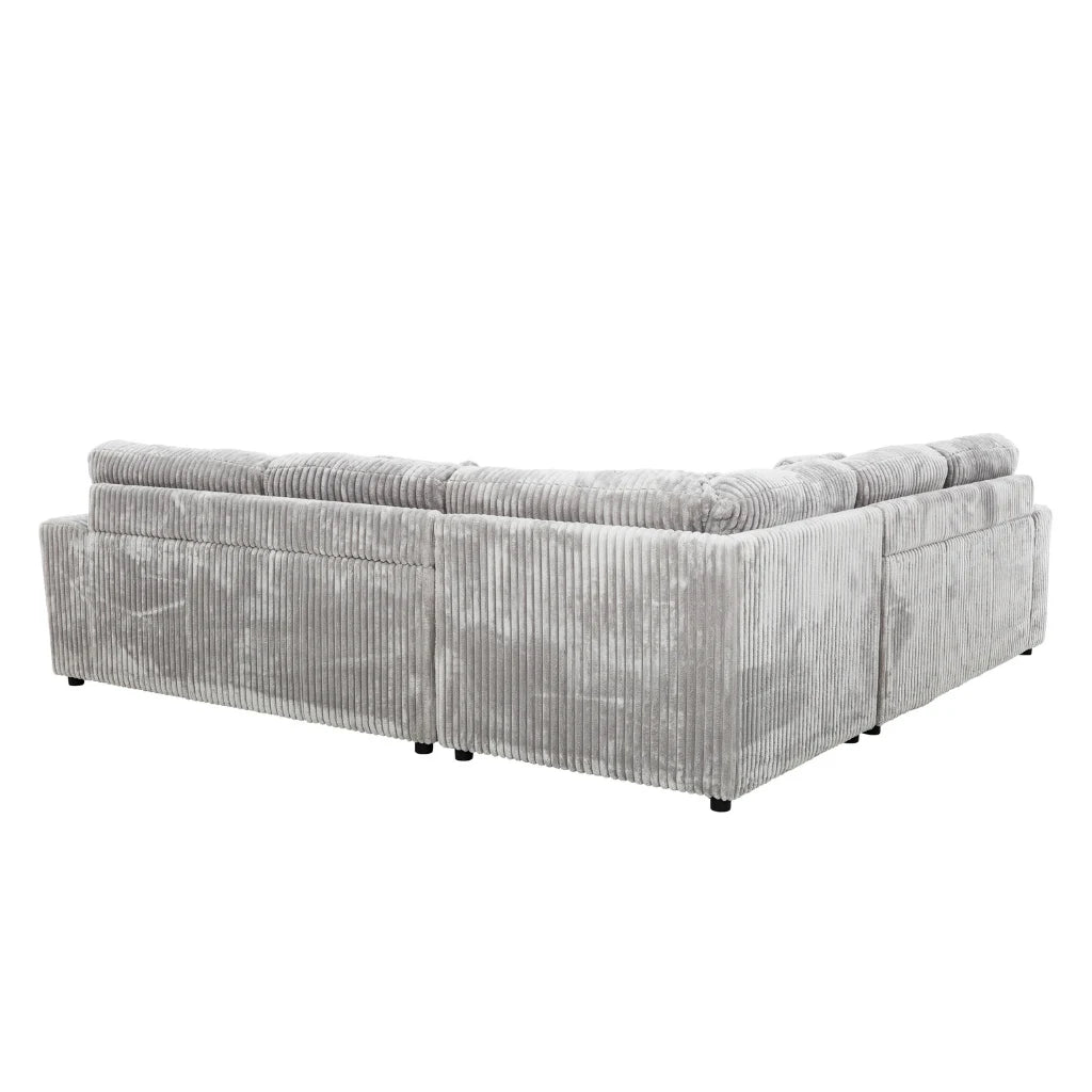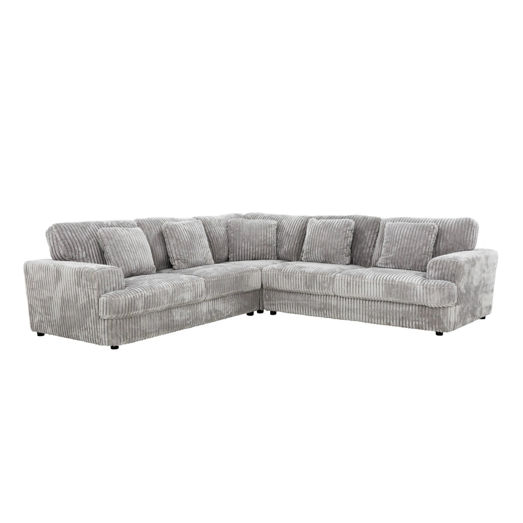 Sofa Sectionnel de Coin Gris Teddy à Texture Côtelée