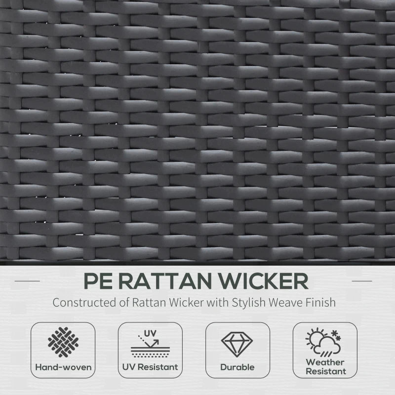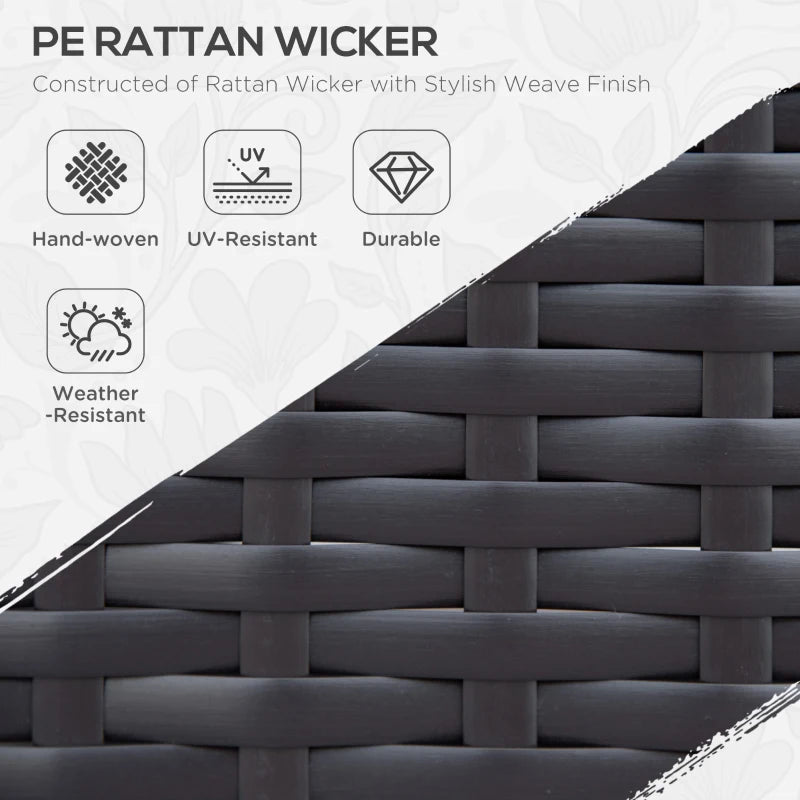- Informations sur les meubles de patio en osier : Taille du canapé d'angle : 29,5" L x 29,5" L x 24,6" H (75 x 75 x 62,5 cm). Taille du canapé du milieu : 29,5" L x 25,6" L x 24,6" H (75 x 65 x 62,5). cm). Taille de la table : 28,7" L x 25,6" L x 12,6" H (73 x 65 x 32 cm). Capacité de poids : 352 lb (160 kg) (canapé), 154 lb (70 kg) (table). Assemblage requis.