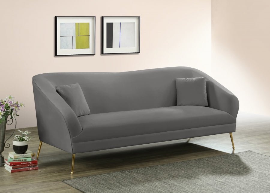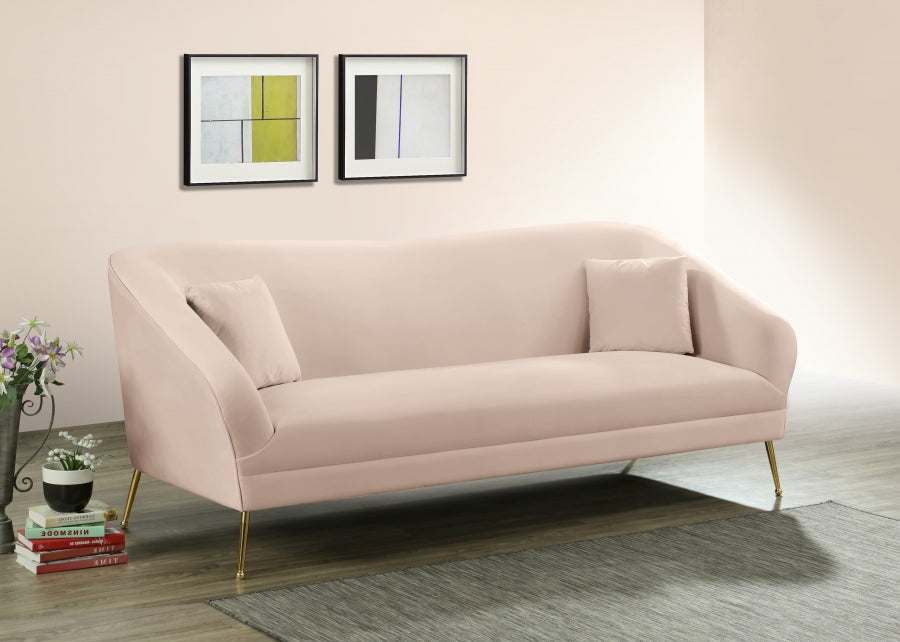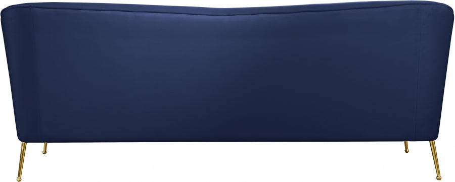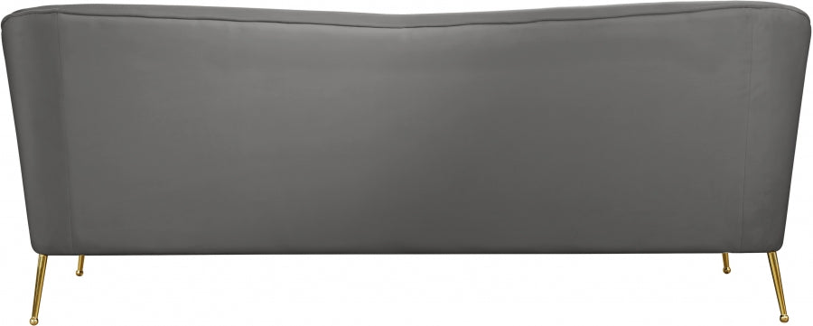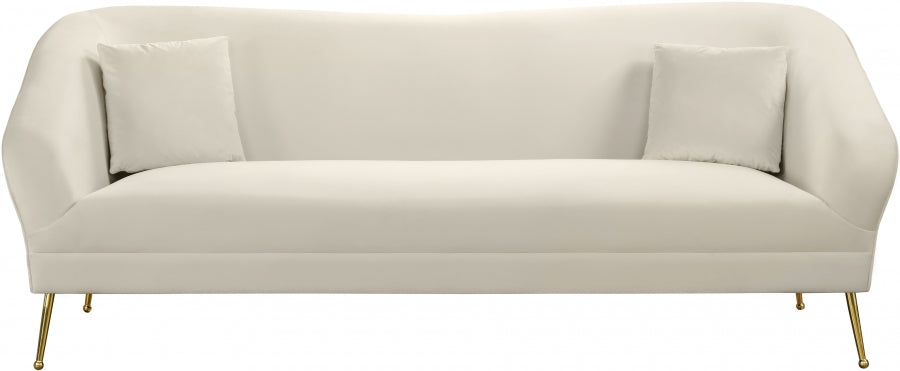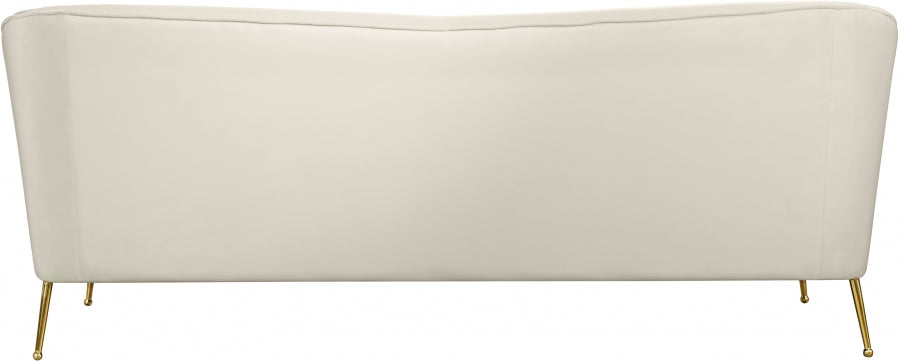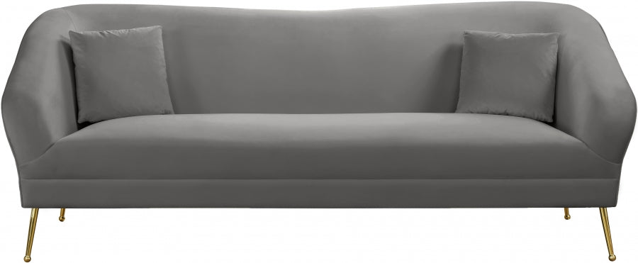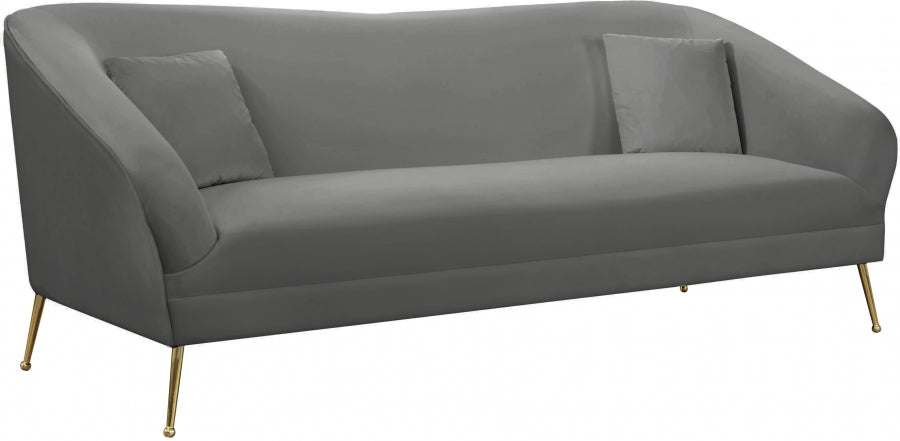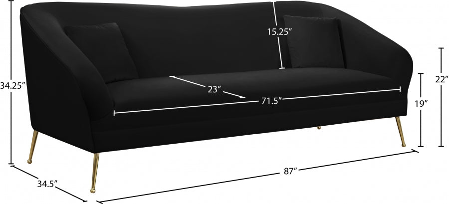 Créez un drame instantané dans votre chambre avec ce canapé en velours Hermosa de Meridian Furniture. Le design du milieu du siècle fait du canapé une véritable vedette parmi les autres meubles, avec son dossier et ses bras incurvés élégants qui créent une silhouette esthétiquement agréable. Le revêtement en velours doux est élégant et somptueux pour la peau et donne à votre pièce un aspect haut de gamme. Des pieds dorés complètent le design, chacun d'eux avec un design en boule sur le pied pour plus de sophistication.