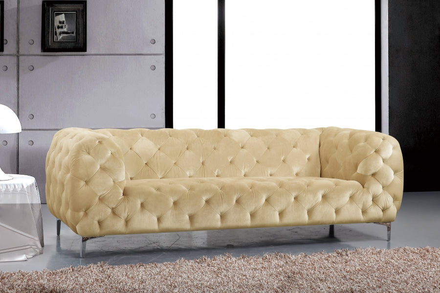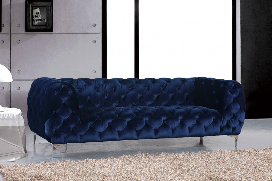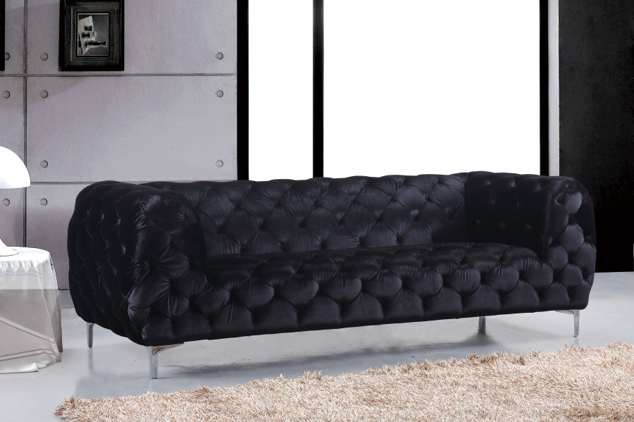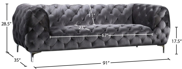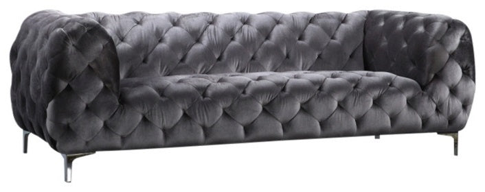 Élégant et accrocheur, le superbe salon Mercer de Meridian Furniture est le complément parfait à tout espace. Rich Velvet recouvre le siège moelleux et confortable, rembourré de mousse haute densité et d'un design capitonné moderne. La force et la beauté sont garanties avec une structure en bois massif et des pieds chromés.