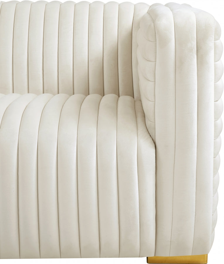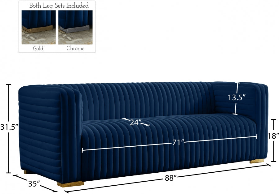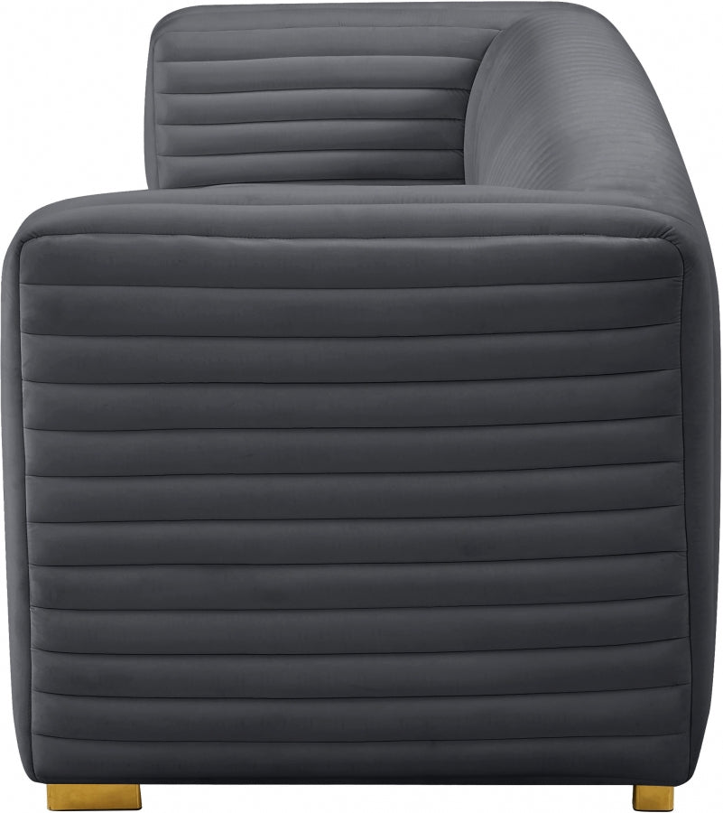 Apportez le décor de votre salon dans l'instant avec ce canapé en velours Ravish. Ce magnifique canapé est doté d'un rembourrage intégral dans une douce couleur noire facile à mélanger avec d'autres éléments de couleur dans votre espace. Le capitonnage à canaux profonds qui s'étend horizontalement et verticalement le long de l'extérieur du canapé ajoute à son look charmant, et il est livré avec des pieds dorés et chromés pour une finition personnalisée.