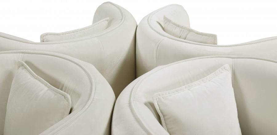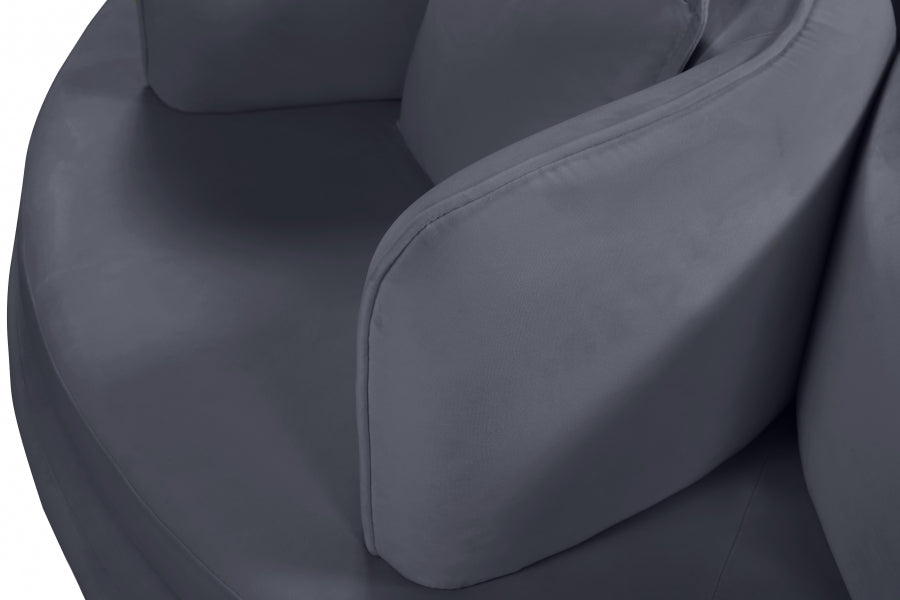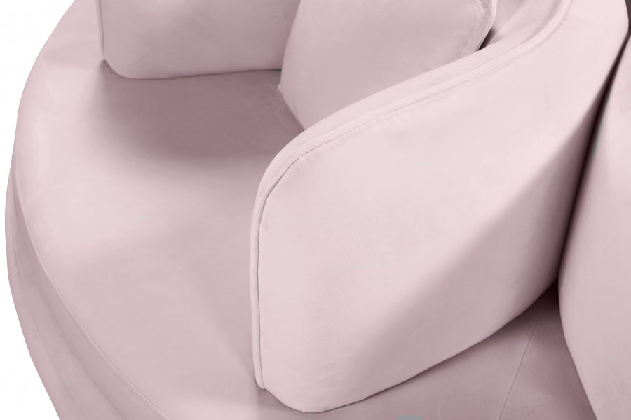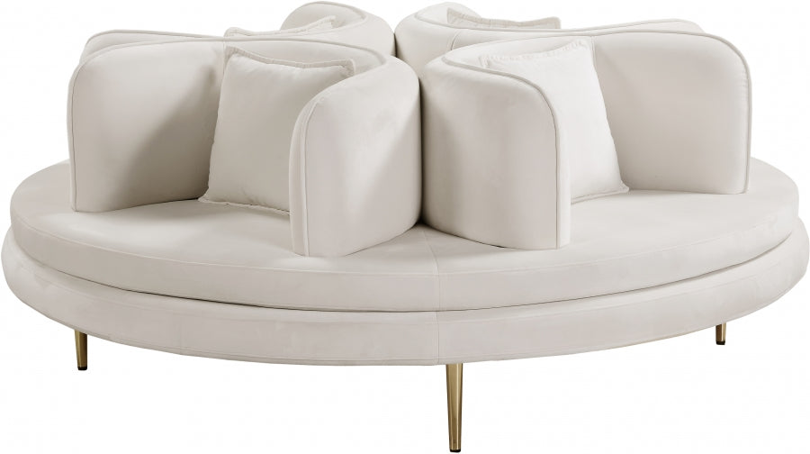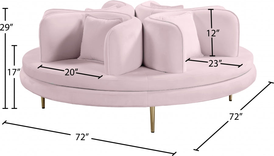 Apportez une élégance inouïe à votre pièce avec ce canapé rond-point en velours Circlet. Ce meuble de fabrication exceptionnelle est recouvert d'un doux velours somptueux au toucher. Les quatre coussins de dossier et les oreillers assortis sont réconfortants pour le dos lorsque vous et vos invités êtes assis, et les pieds en fer doré font du canapé un ajout solide à votre pièce.