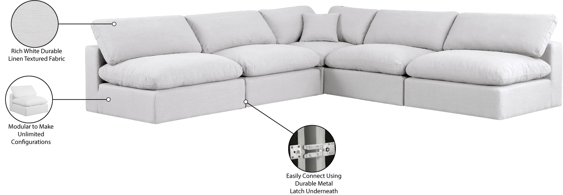 Donnez à votre espace un tout nouveau look avec ce canapé sectionnel en tissu texturé en lin Comfy. Ce beau canapé sectionnel s'agence parfaitement aux autres articles de la collection Comfy et constitue une option de siège polyvalente conçue pour l'adaptabilité, le confort et le style. Enveloppé dans un riche tissu d'ameublement texturé en lin durable, ce canapé sectionnel offre une étreinte moelleuse de coussins en plumes rembourrés, soigneusement conçus pour offrir le plus haut niveau de confort. Siège parfait pour créer une oasis de détente, ce canapé sectionnel est doté d'une mousse épaisse entourant son cadre pour plus de soutien et de confort.