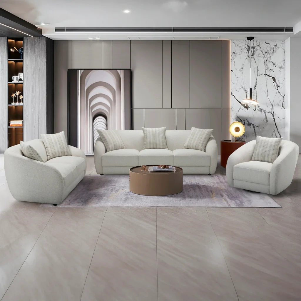 Petite en format mais riche en confort, la causeuse Sophy crée une ambiance douce dès qu’on s’y installe. Ses accoudoirs arrondis et son profil tout en courbes ajoutent une touche chaleureuse, tandis que les deux coussins assortis renforcent la sensation de détente. Les coussins soutenus par mousse et ressorts gardent leur confort au fil des utilisations, et la structure en bois massif assure une solidité durable. Revêtue d’un tissu au toucher doux, la Sophy s’intègre facilement dans un décor moderne ou plus décontracté.
