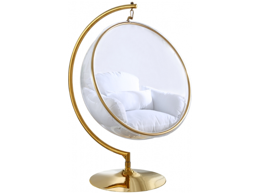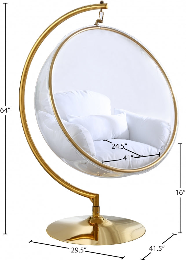 Retirez-vous dans votre propre petite bulle, littéralement, dans cette chaise d'appoint à bulles en acrylique Luna. Quel ajout tendance à votre salon, chambre ou autre espace ! Cette chaise Luna est dotée d'un siège en acrylique de style œuf surmonté de coussins recouverts de tissu pour un confort suprême. La base et le cadre en métal doré offrent un support solide pour que vous puissiez vous détendre à votre guise dans votre propre sanctuaire.
