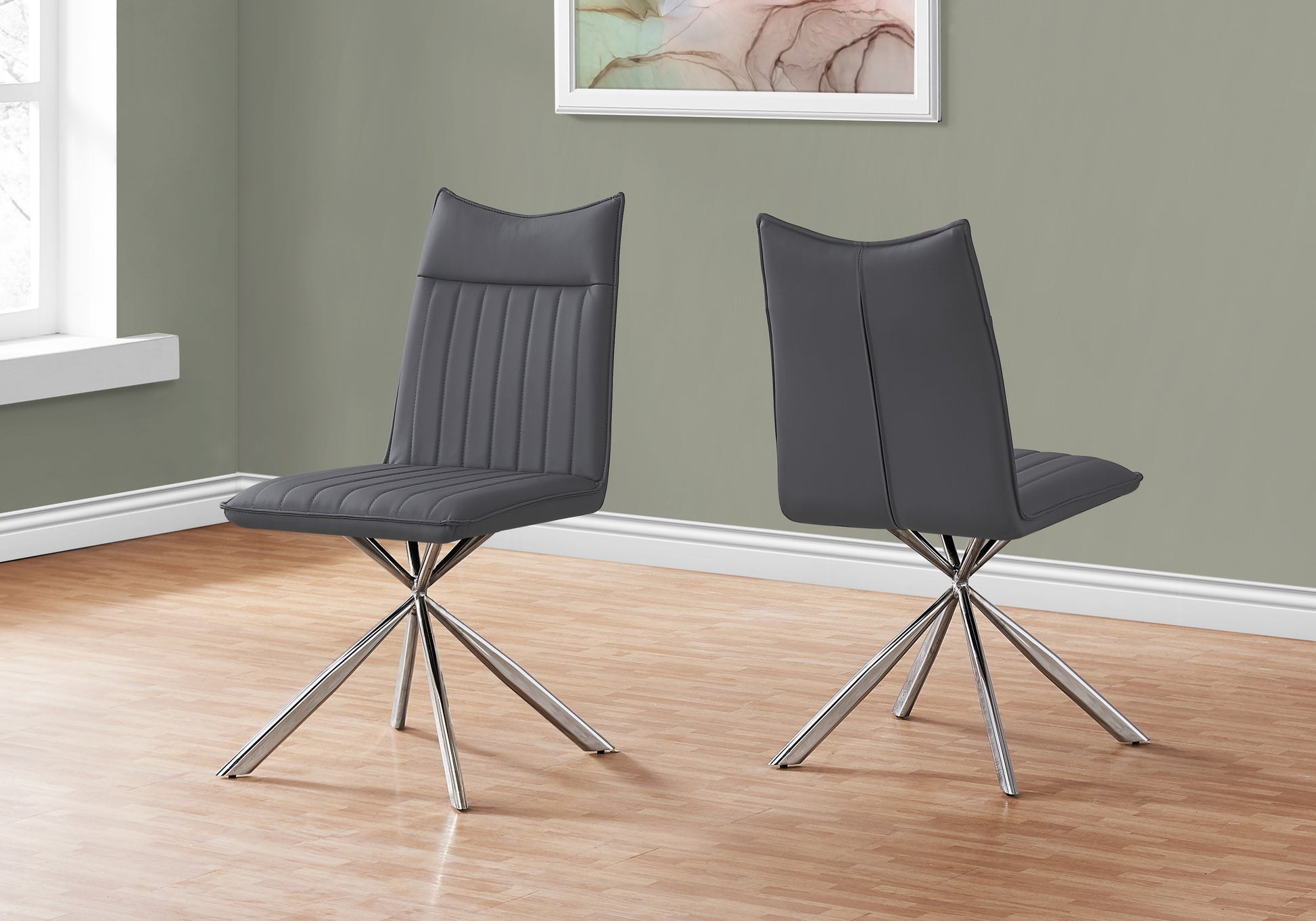 CHAISE DE SALLE A MANGER - 2PCS / 36"H / SIMILI-CUIR GRIS / CHROME