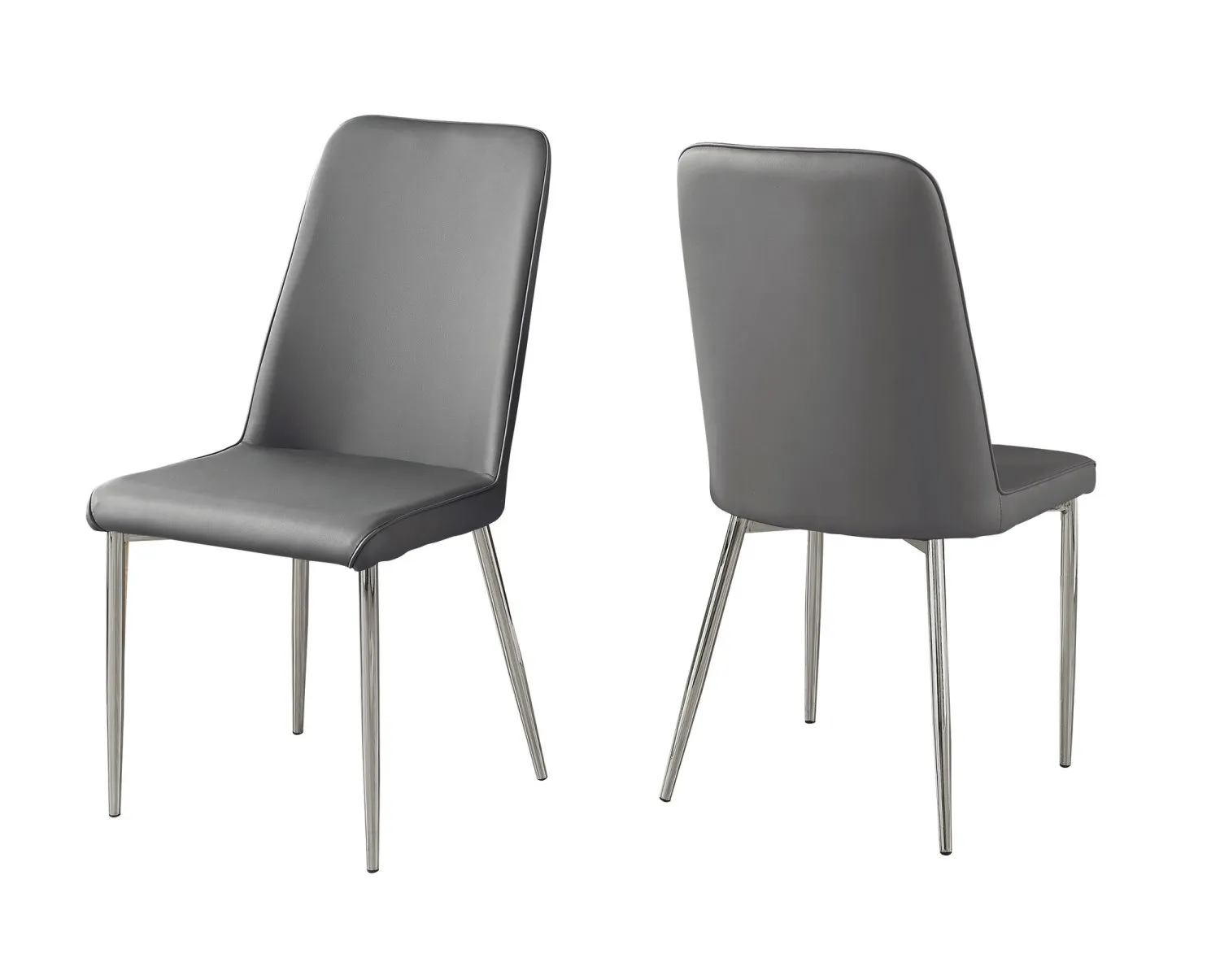 CHAISE DE SALLE A MANGER - 2PCS / 37"H / SIMILI-CUIR GRIS / CHROME