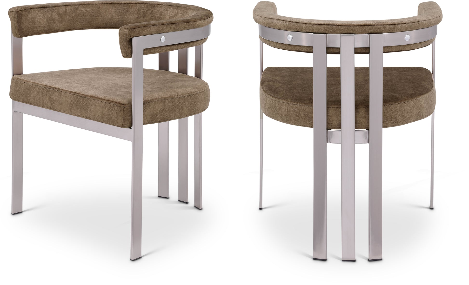 Transformez votre espace salle à manger en un havre contemporain avec cette chaise de salle à manger en velours Marcello. Son velours doux et haut de gamme est doux sur lequel vous pouvez vous asseoir, tandis que son cadre en fer chromé brossé assure une durabilité pour les années à venir. Son dossier incurvé offre un soutien lorsque vous êtes assis et savourez votre repas, afin que votre dos ne se fatigue pas ou ne vous fasse pas mal pendant que vous mangez. Son design incurvé et contemporain est parfait pour toute maison moderne.