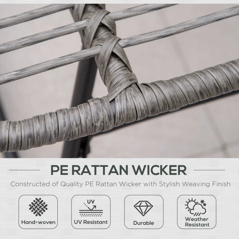 - Matériau sélectionné : l'ensemble de meubles de patio est composé d'un cadre en acier robuste avec un processus de revêtement en poudre, enveloppé dans un osier en rotin PE tissé à la main de conception spéciale pour une durabilité supérieure et un style élégant.