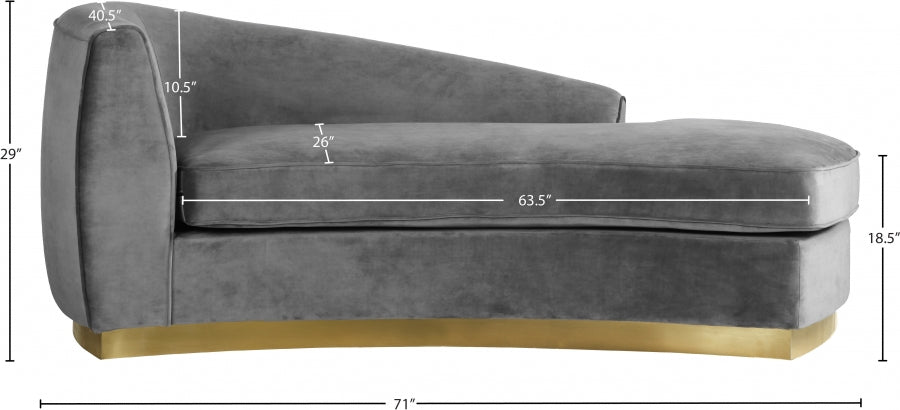 Le mélange parfait de velours et d'acier inoxydable doré prend vie dans votre espace avec cette méridienne en velours Julian. Cette méridienne en velours audacieux est recouverte d'un velours riche et somptueux au toucher pour faire une déclaration à la mode dans votre espace. La conception incurvée du dos lui confère une touche à la mode, et la garniture en acier inoxydable doré autour de sa base ajoute à son attrait fastueux. Mettez en scène cette méridienne seule ou avec d'autres pièces de la collection Julian.