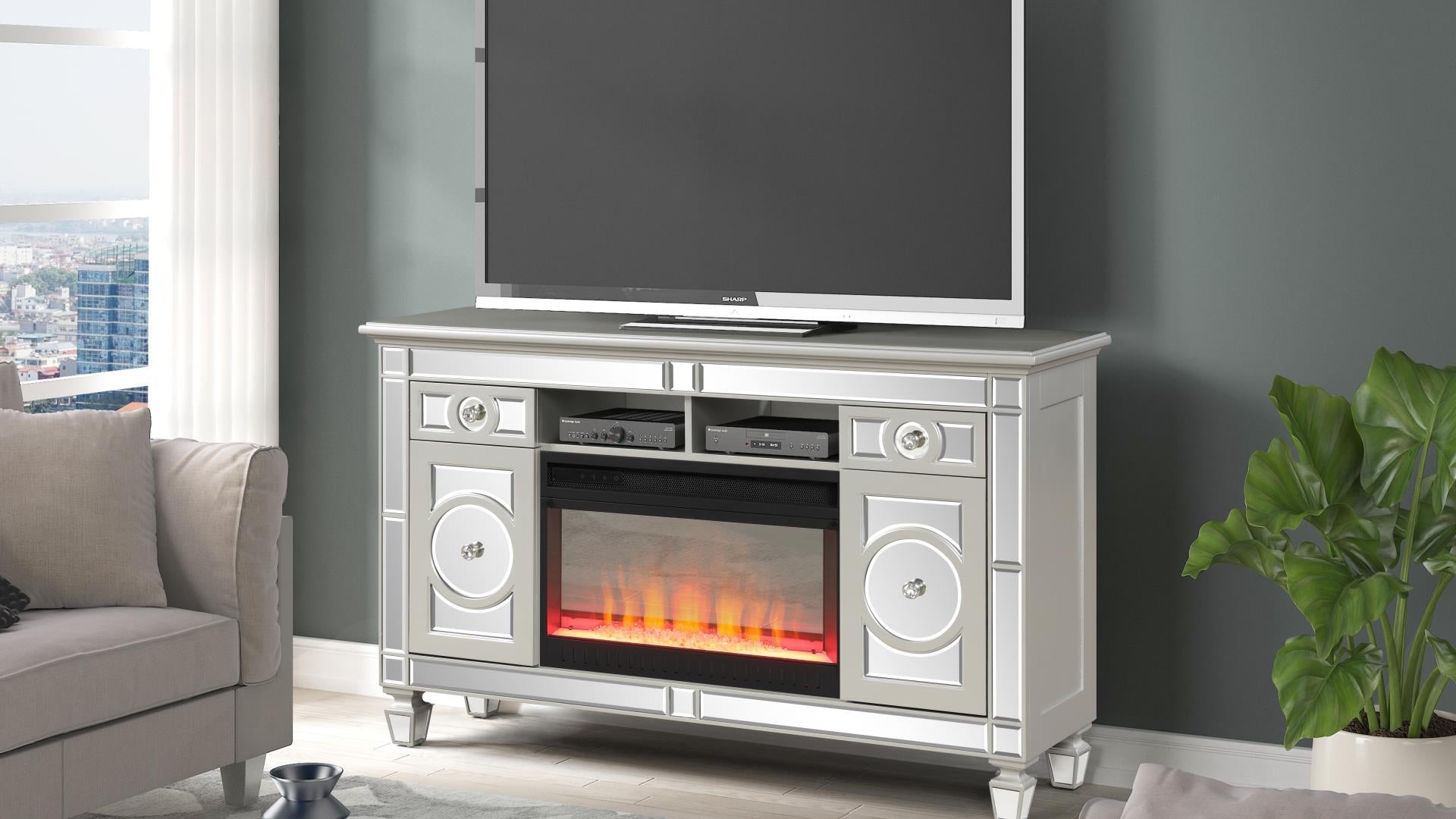 Rassemblez vos proches pour une soirée cinéma et installez-vous confortablement à côté de cette console TV avec foyer électrique pour téléviseurs jusqu'à 70". Le foyer électrique transformera votre salon ou votre salle familiale en une vitrine chaleureuse, confortable et majestueuse. La construction de qualité en bois dur et Les stratifiés sont rendus encore plus impressionnants par le savoir-faire de la couleur argent et une façade en miroir transparent, des accents glamour. La console offre des flammes de cristal réalistes avec la technologie LED économe en énergie. La console du foyer peut accueillir des téléviseurs à écran plat et comprend des armoires pour ranger les médias et accessoires de jeu. Contrôlez la plage de température, de 62 °F à 82 °F, et l'affichage des flammes avec la télécommande pratique. Cet insert de cheminée est suffisamment puissant pour chauffer une pièce jusqu'à 400 pieds carrés et dispose d'un contrôle de température réglable pour garder votre espace parfait. . Avec un design polyvalent, ce meuble TV peut être utilisé non seulement comme centre de divertissement dans votre salon, mais également comme armoire de rangement dans votre chambre. La chaleur infrarouge aide à maintenir l'humidité naturelle de l'air, ce qui entraîne une chaleur humide et confortable sans assécher l'atmosphère de la pièce. Profitez des réunions de famille, des fêtes de match et des soirées en amoureux devant un feu douillet. Profitez de feux agréables toute l’année, avec ou sans chaleur.