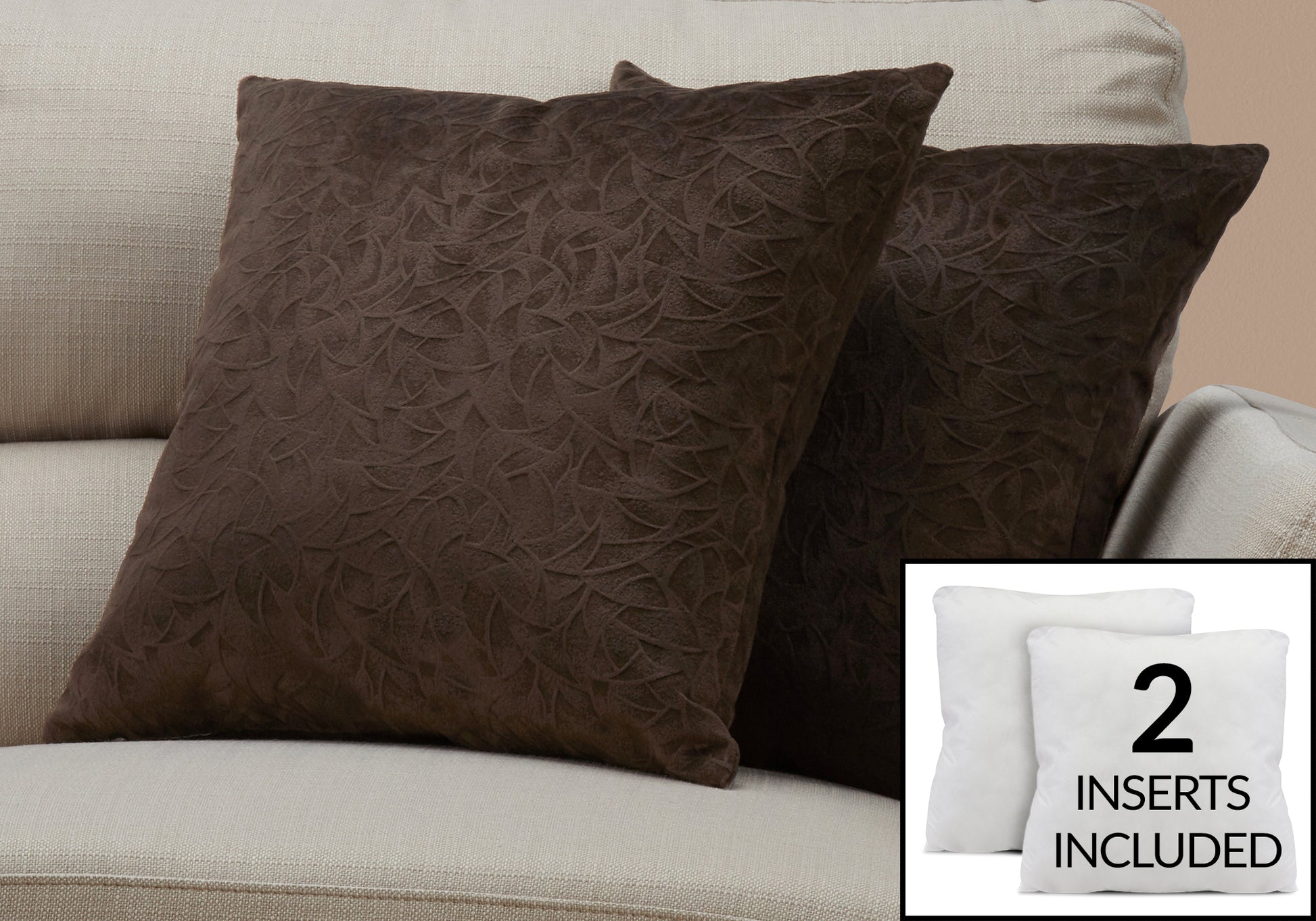 Ajoutez une touche de glamour à votre décor avec cet ensemble de 2 coussins d'appoint carrés au riche fini velours floral. L'élégante couleur marron foncé des deux côtés ajoute de la somptuosité à une chaise, un canapé, un banc d'entrée ou un lit préféré. Fabriqué à partir de tissu en polyester doux et la fermeture à glissière latérale pratique permet de retirer facilement les inserts en polyester pour laver les taies d'oreiller en machine. Ces coussins en velours moelleux sont la touche finale parfaite.