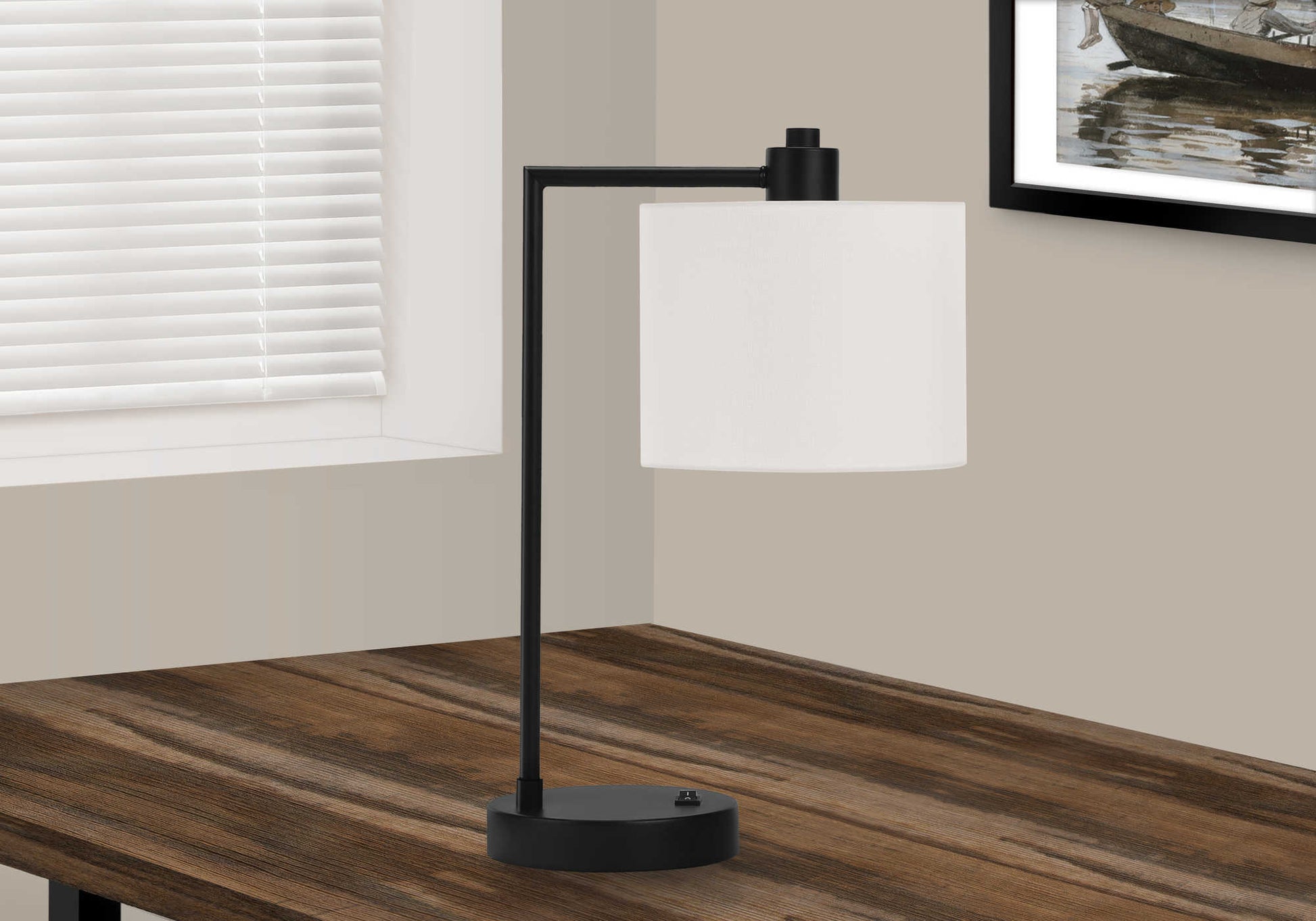 Que vous ayez besoin d'une lampe de travail décorative pour égayer votre espace de travail, d'une table de nuit ou d'une table de chevet, cette lampe de table moderne de 19 pouces, tendance et élégante, avec le port USB inclus est le choix parfait ! Idéal pour égayer n'importe quel bureau, salon ou chambre à coucher, cet éclairage d'accentuation contemporain repose sur un corps en métal noir élégant avec un bras mince et surmonté d'un abat-jour en tissu ivoire dégageant une douce lueur. Cette lampe pratique est fixée à l'aide d'un cordon noir de 6 pieds, d'un interrupteur à bascule marche/arrêt intégré pratique et d'un port USB à la base pour recharger votre appareil, et abrite une seule ampoule (non incluse) pour une puissance lumineuse maximale de 60 W. /120V. Fabriquée avec des matériaux durables de qualité garantissant la longévité, cette lampe comprend une garantie limitée de 2 ans contre tout défaut de fabrication pour un achat sans souci.