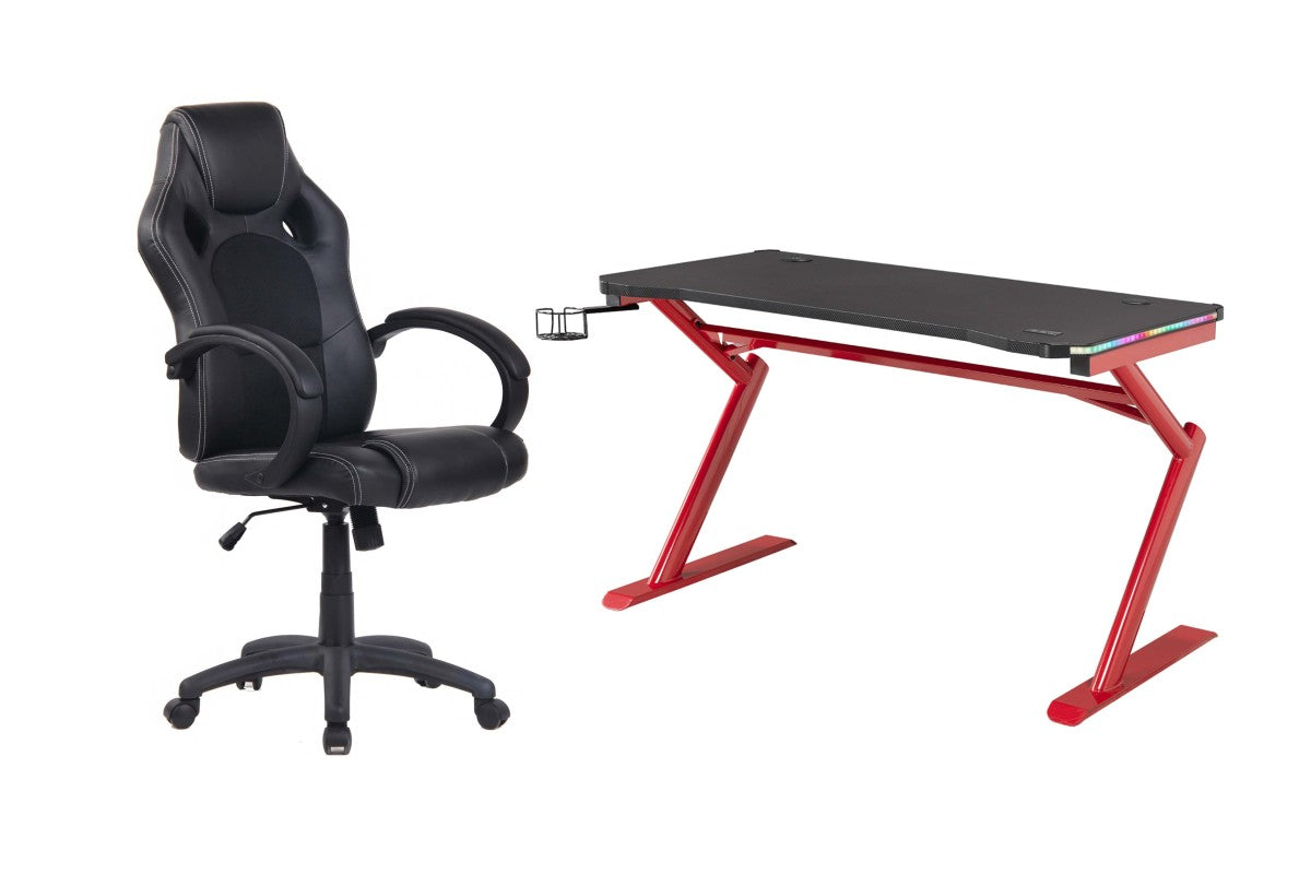 ENSEMBLE BUREAU ET CHAISE GAMING, NOIR/ROUGE ( Meuble Mtl )