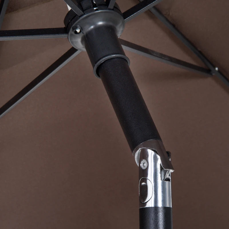 - • Le parapluie résistant aux UV s'ajuste à l'aide d'une poignée facile à tourner et d'un bouton de commande d'inclinaison.