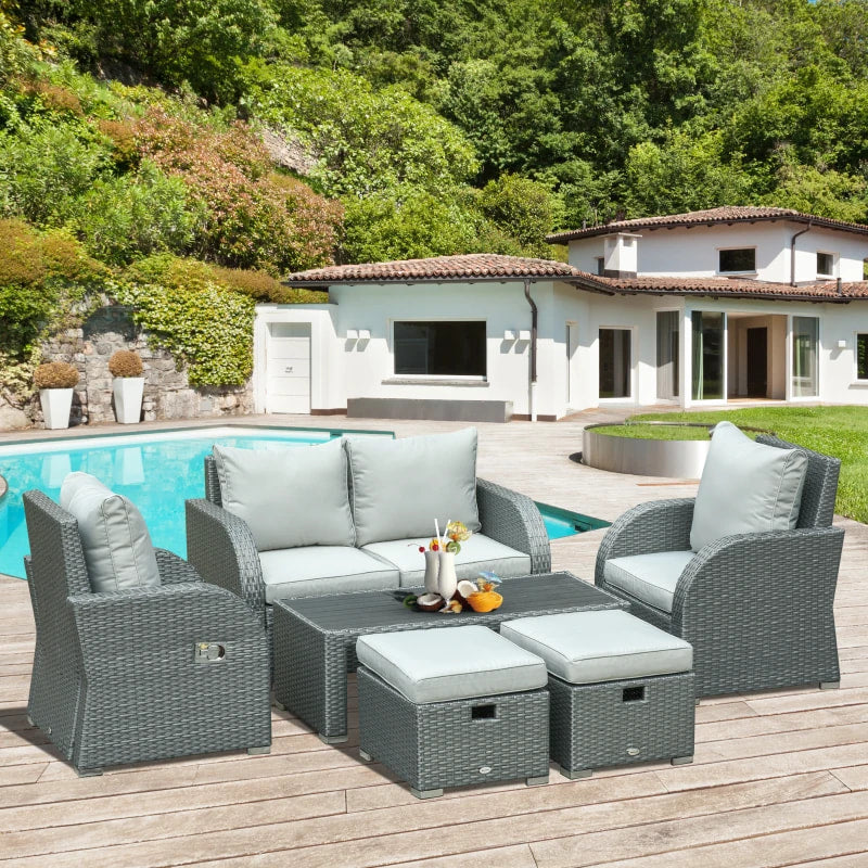 Ensemble de canapé d'extérieur en rotin et osier, 6 pièces, meubles de Patio tous temps avec Table à thé et coussin pour jardin d'arrière-cour gris